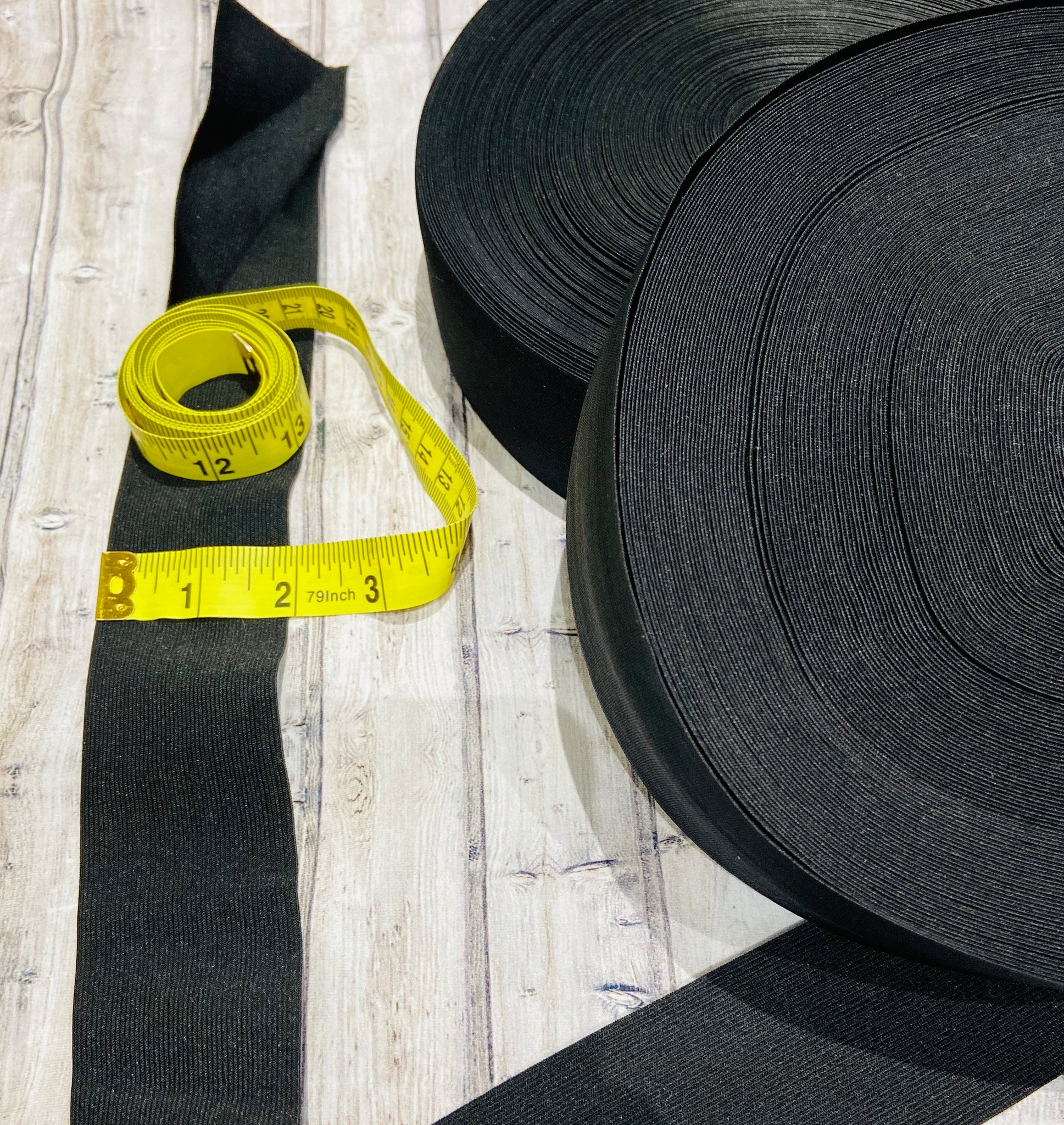 Black Elastic Webbing - Assorted Sizes - Sold by the meter