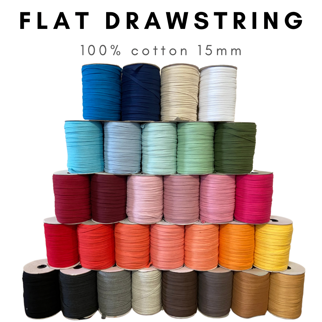 * this product will be regularly stocked. Sold out colors will be replenished in our next stock order. Awesome Flat Cotton drawstring in a variety of colors Sold by the METER 1 - 1 METER 2 - 2...Read more
