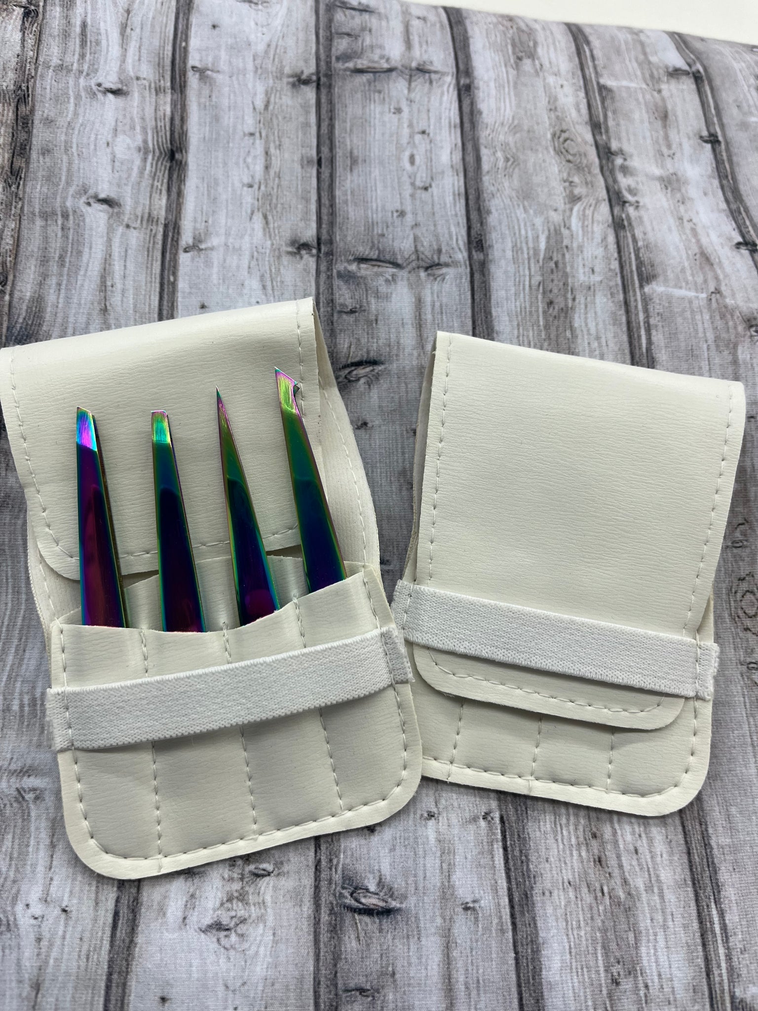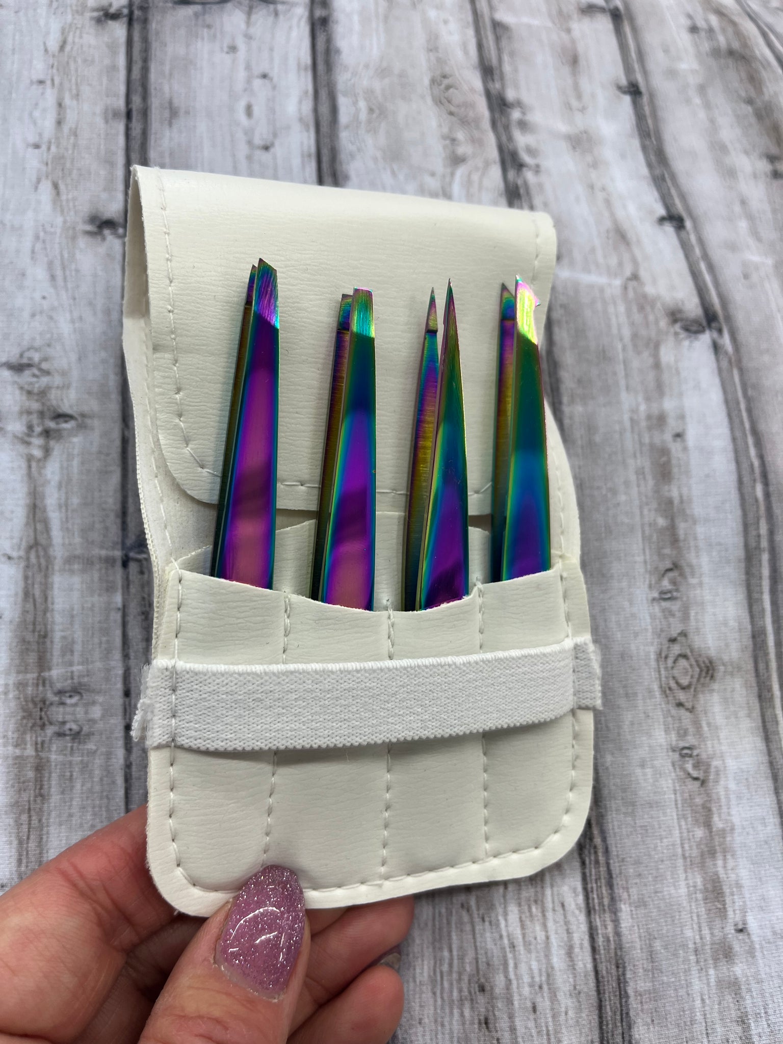 4 iridescent tweezers in a handy dandy carrying caseRead more