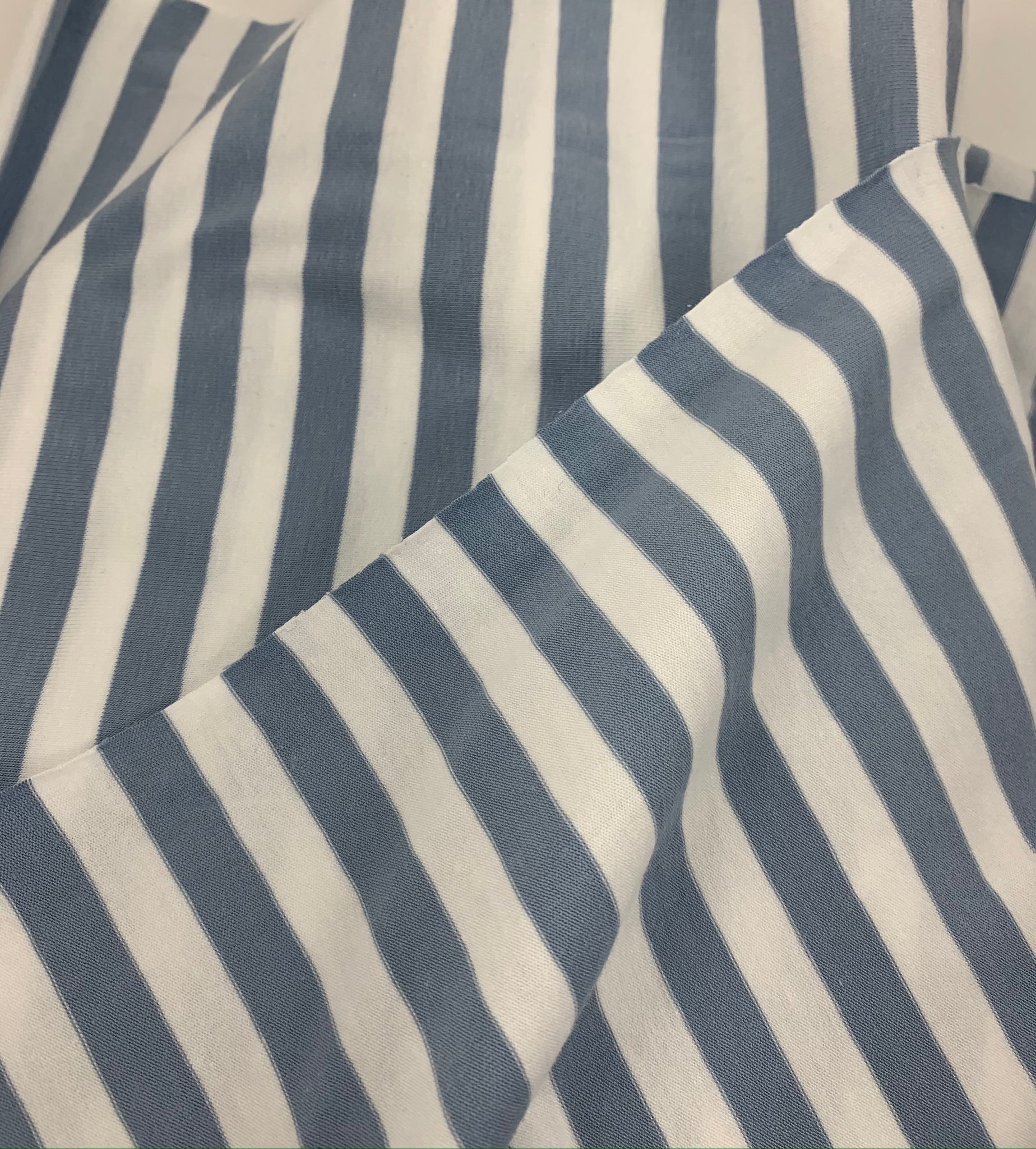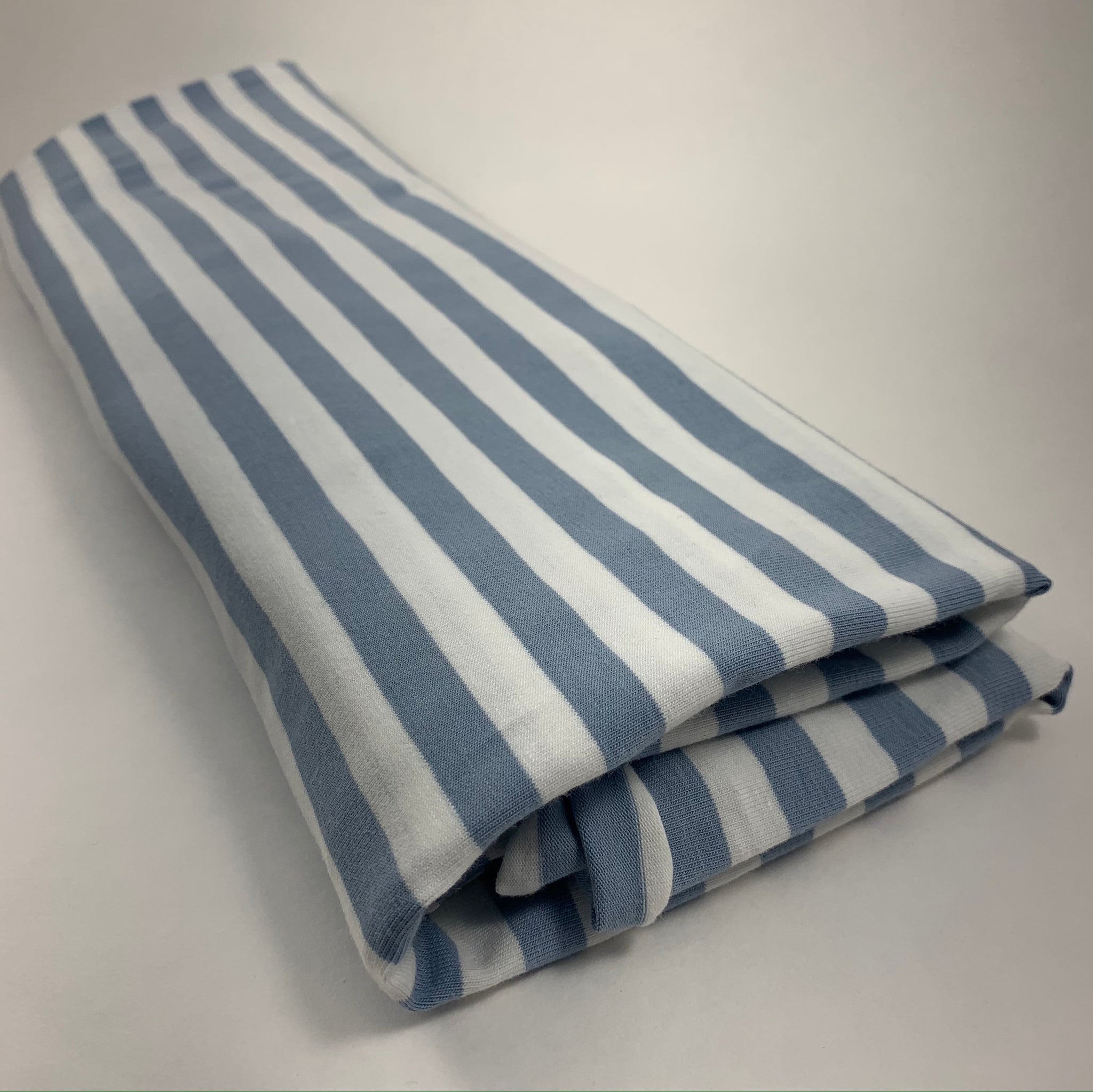 Description: Makes for great T shirts, T shirt dresses. Cotton is light and breathable for warmer weather. Yarn is truely died so wrong side is colored aswell. Complimentary Notions: Jersey Bias Tape: Baby Blue, Optical White, New Jeans Jersey Piping: Optical White Stretch Piping: White, Off White, Baby Blue. |