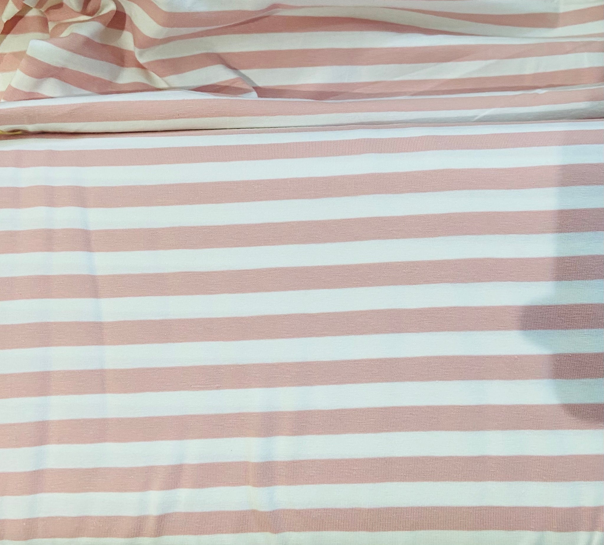 Yarn Dyed Stripes - 1cm wide Rose and White ( sold by the meter )