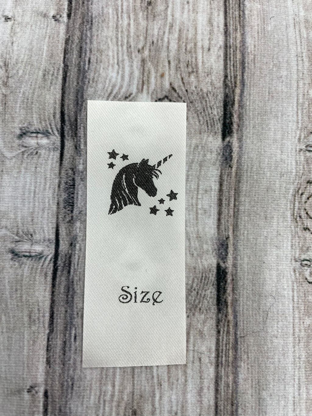 Satin Size Tags - Unicorn (Pkg of 10) - $4.00