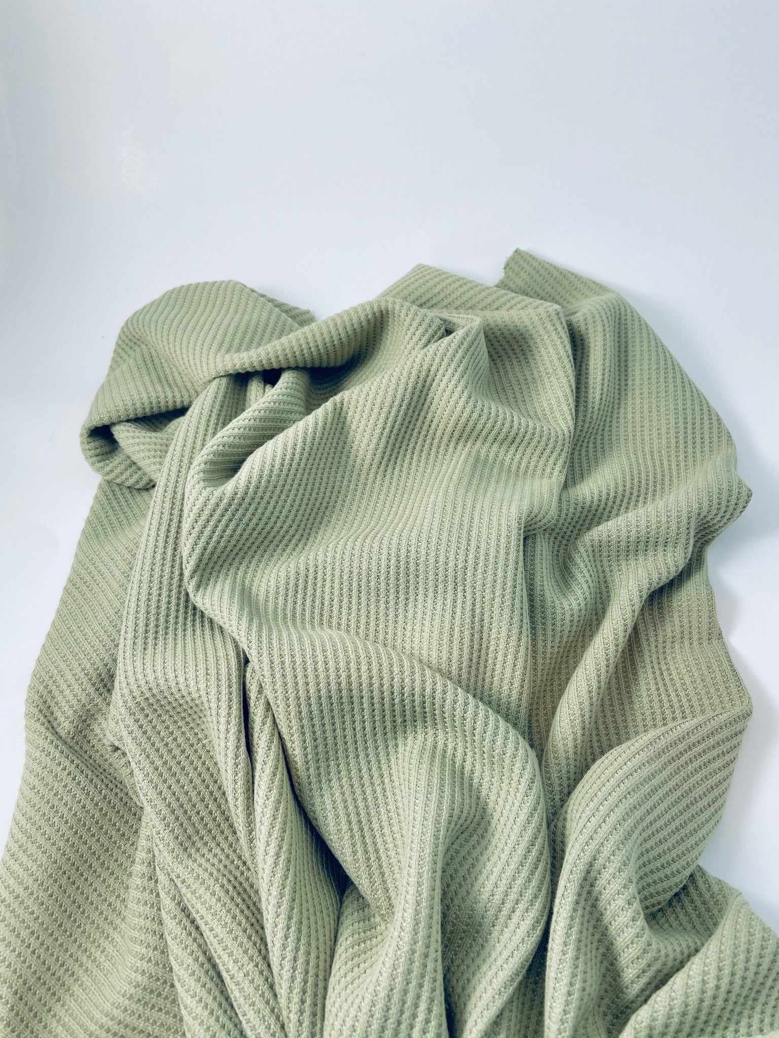 Fabric Content: 68% polyester, 20 % cotton, 7% rayon 5% spandex Weight: 330 GSM Width: 150-160 cm Stretch: 4 way stretch - this fabric has no " wrong" side Drape: Moderate - Better than you would expect from a thick waffle Care Instructions: Machine...Read more