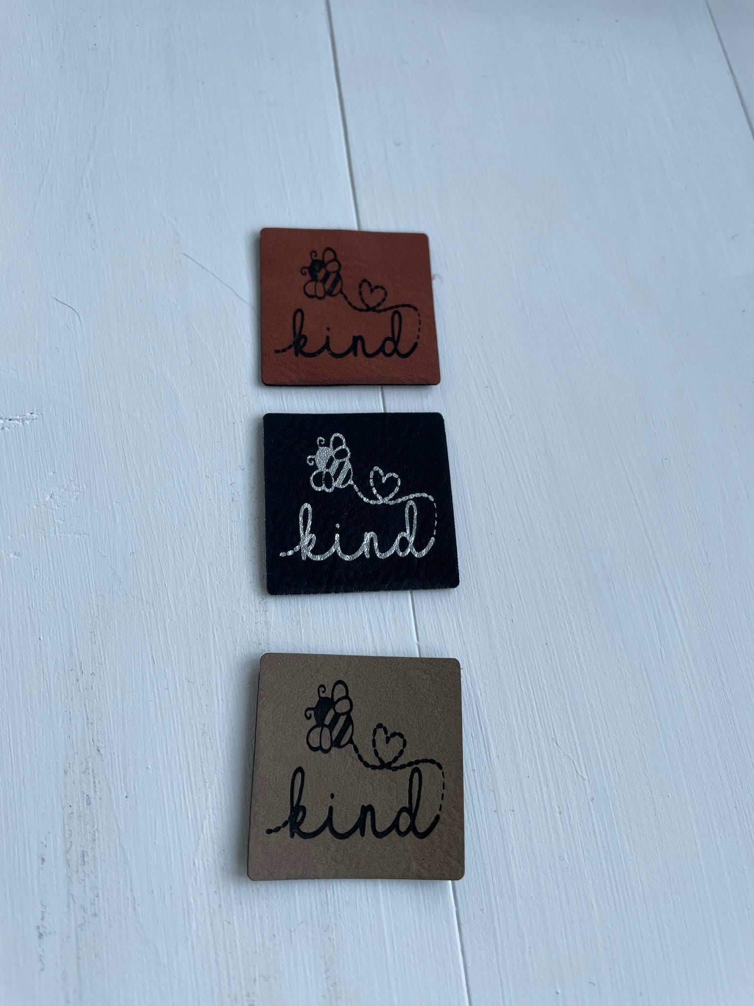 Leatherette Tag - "Bee" Kind 1x1 inch - Mix pack of 3