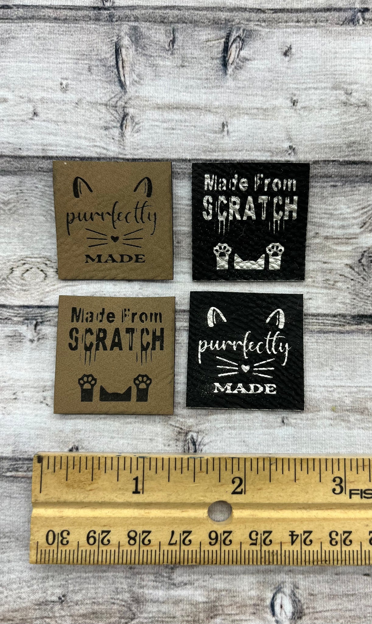 Leatherette Tag - Cat Made - Set of 2 (1.25' x 1.25") Ash/Black