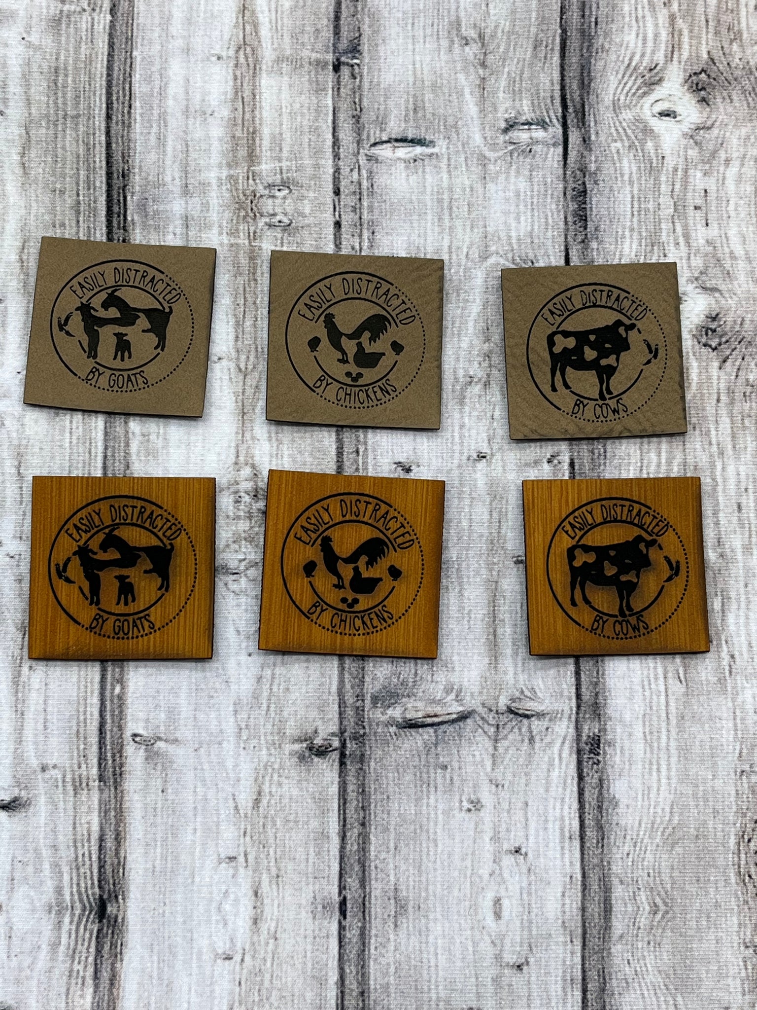 Leatherette Tag - Easily Distracted by Goats - Set of 2 (1.25' x 1.25") Ash/Woodgrain