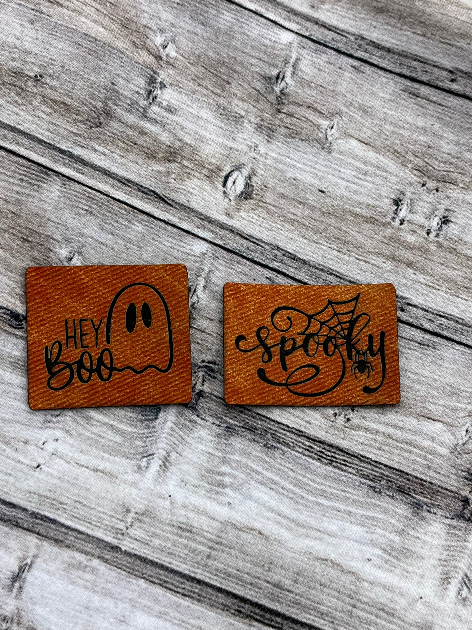 Leatherette Tag - Hey Boo/Spooky - Set of 2 - Rust Denim