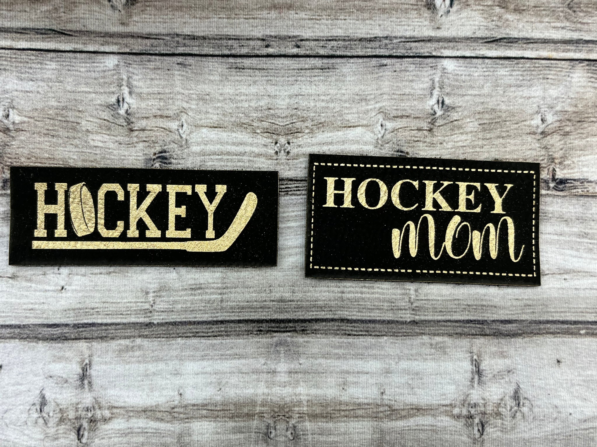 Leatherette Tag - HOCKEY (1 x 3) Wood Grain/Black