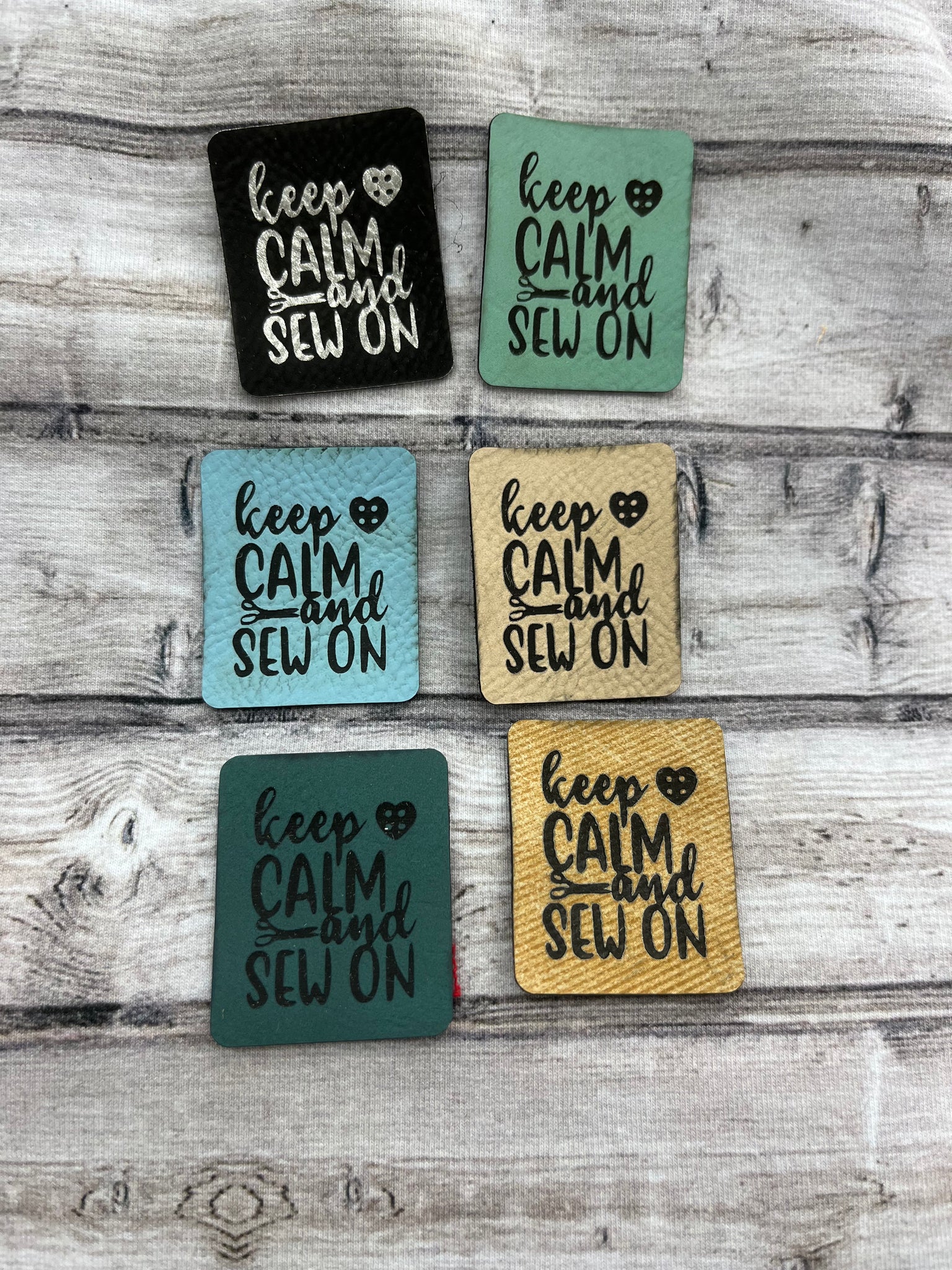 Leatherette Tag - Keep Calm and Sew On - 1.5"x1.5"
