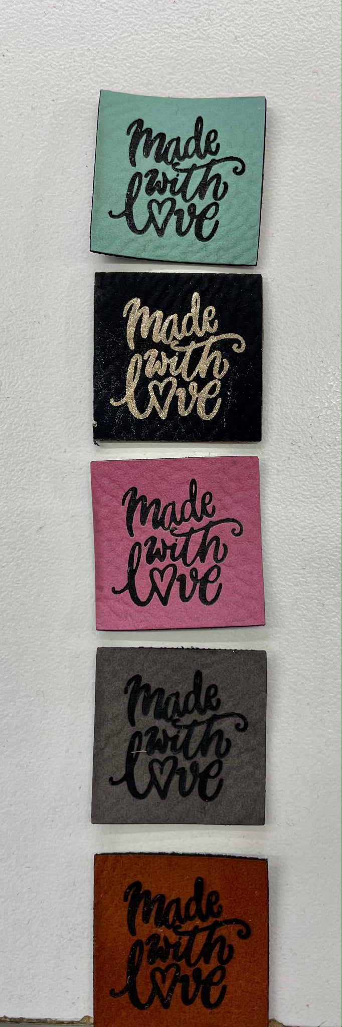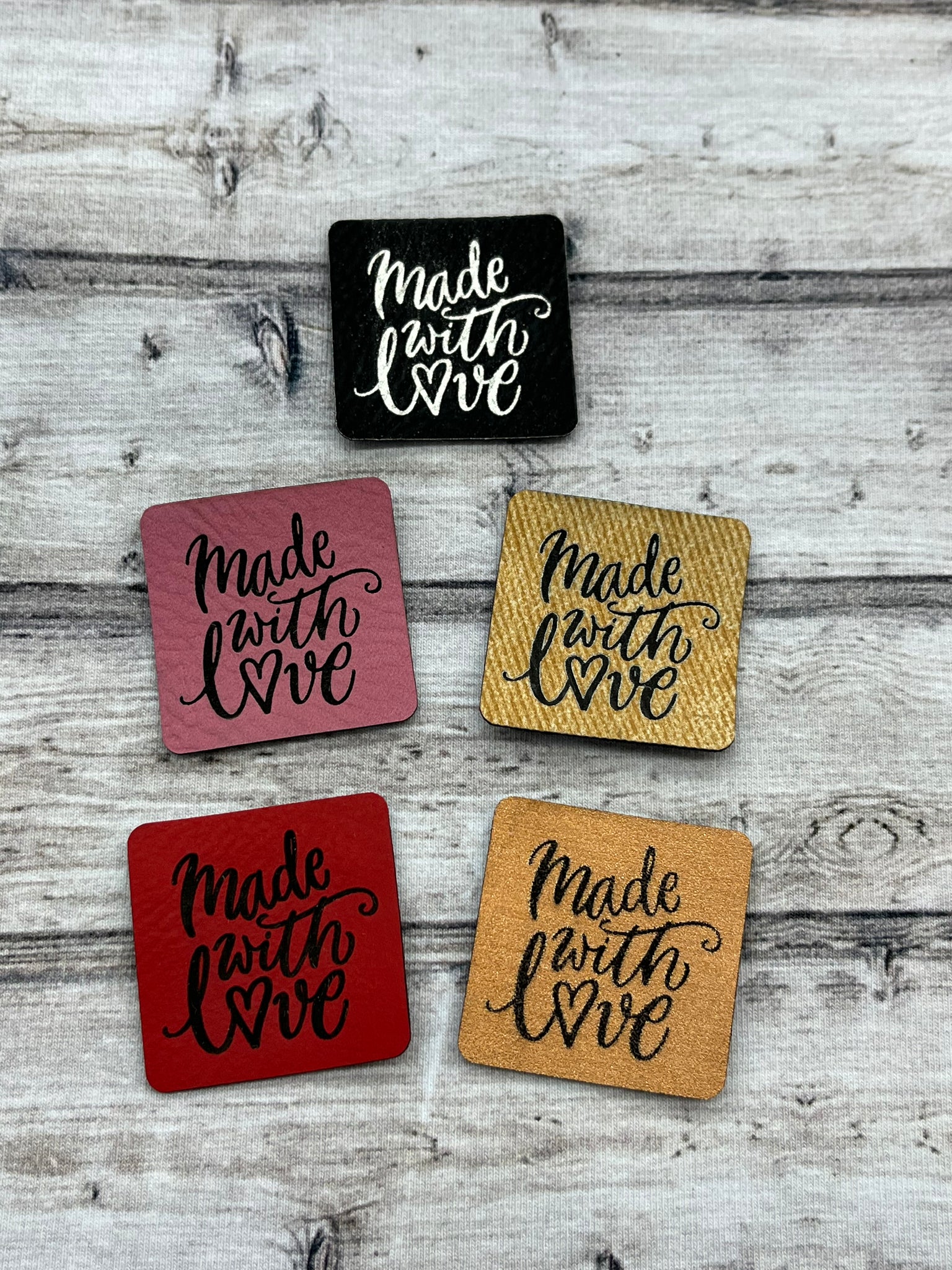 Leatherette Tag - Made with Love 1x1 inch Mixed Pack (5)