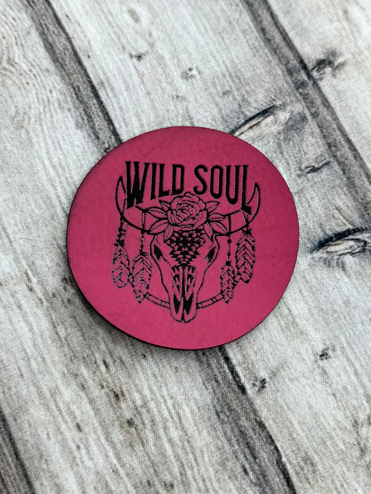 Leatherette Tag - Wild Soul 2" - Carmine with Black Font 2"