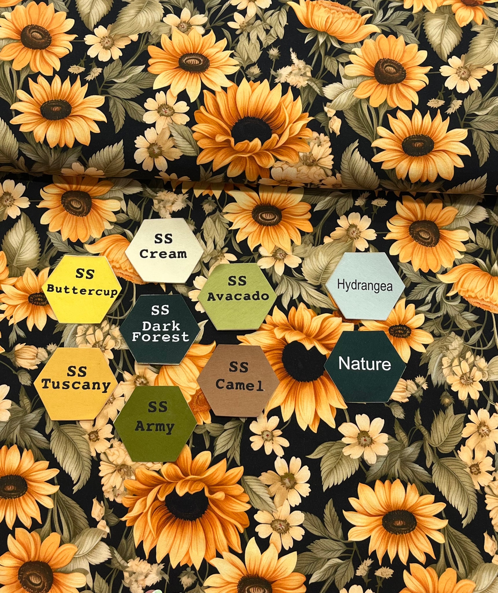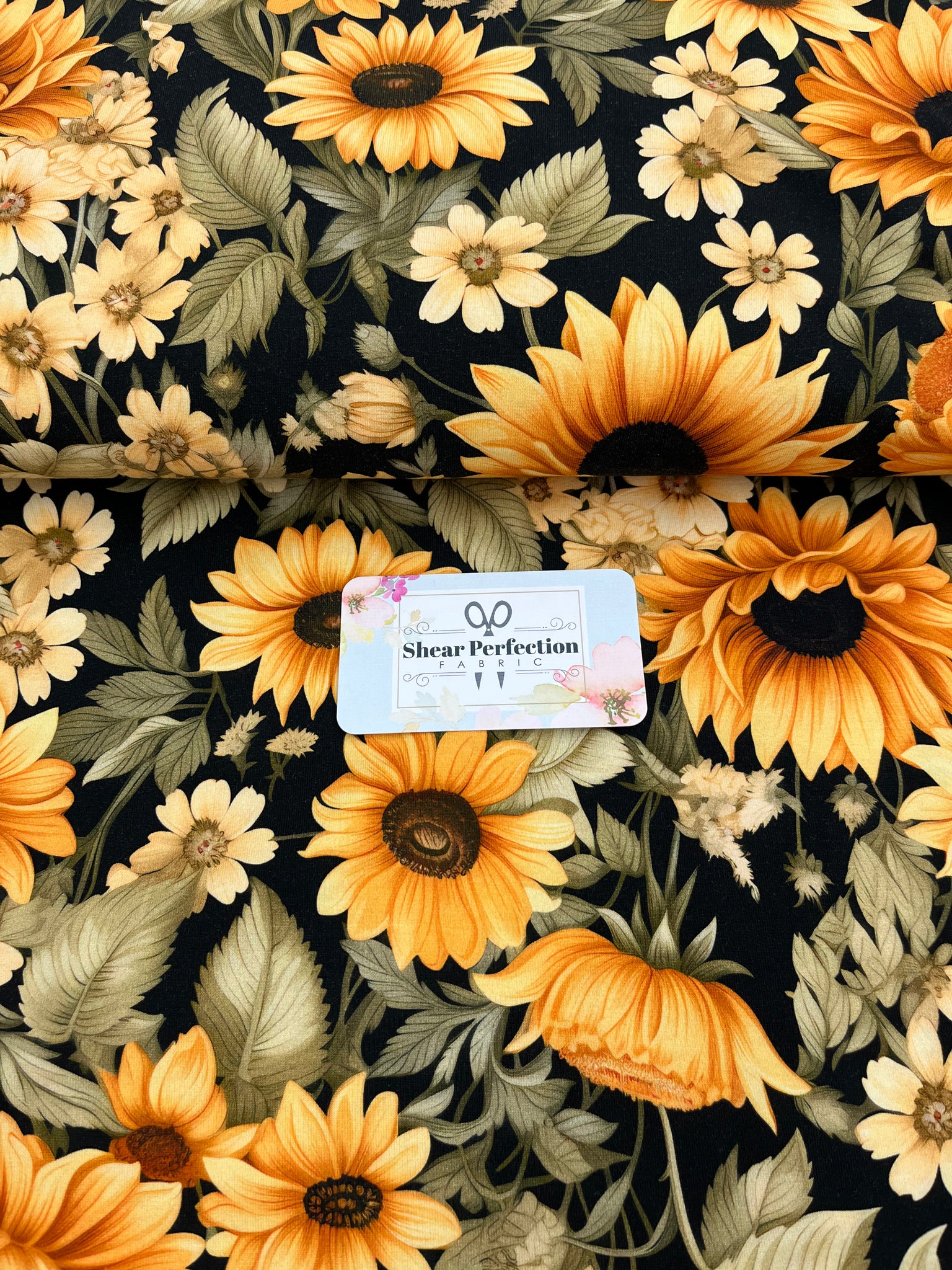 May Flowers - Black Sunflower on Cotton Lycra Jersey