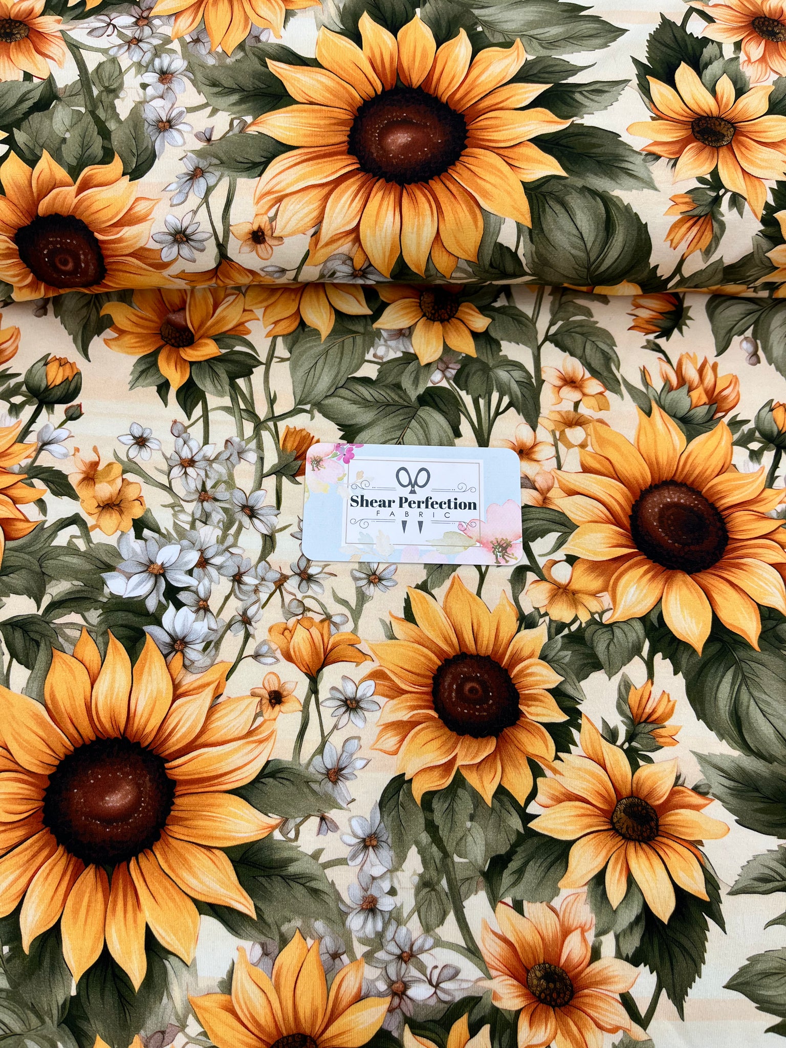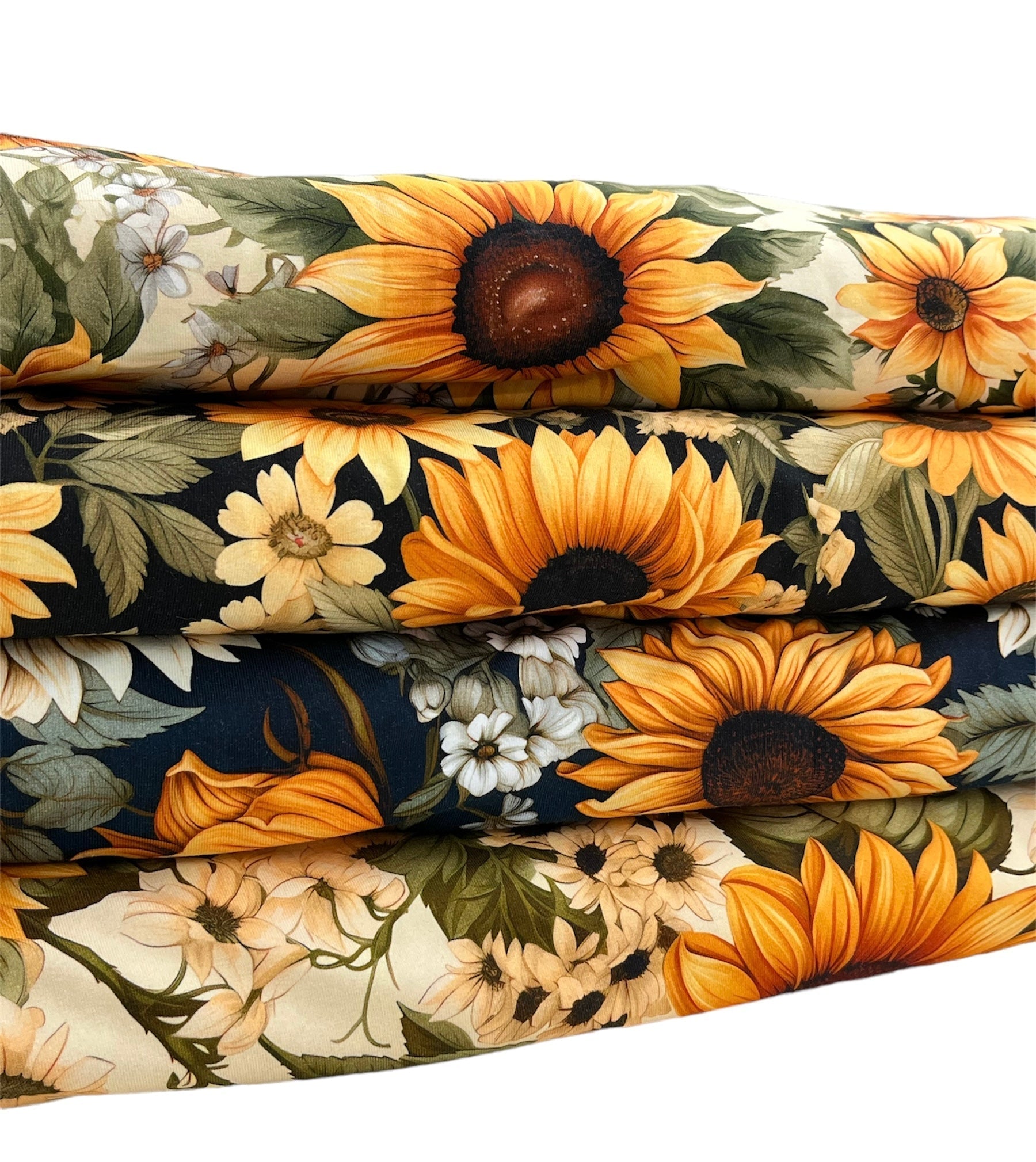 May Flowers - Sunflowers and White Magnolias on Cotton Lycra Jersey