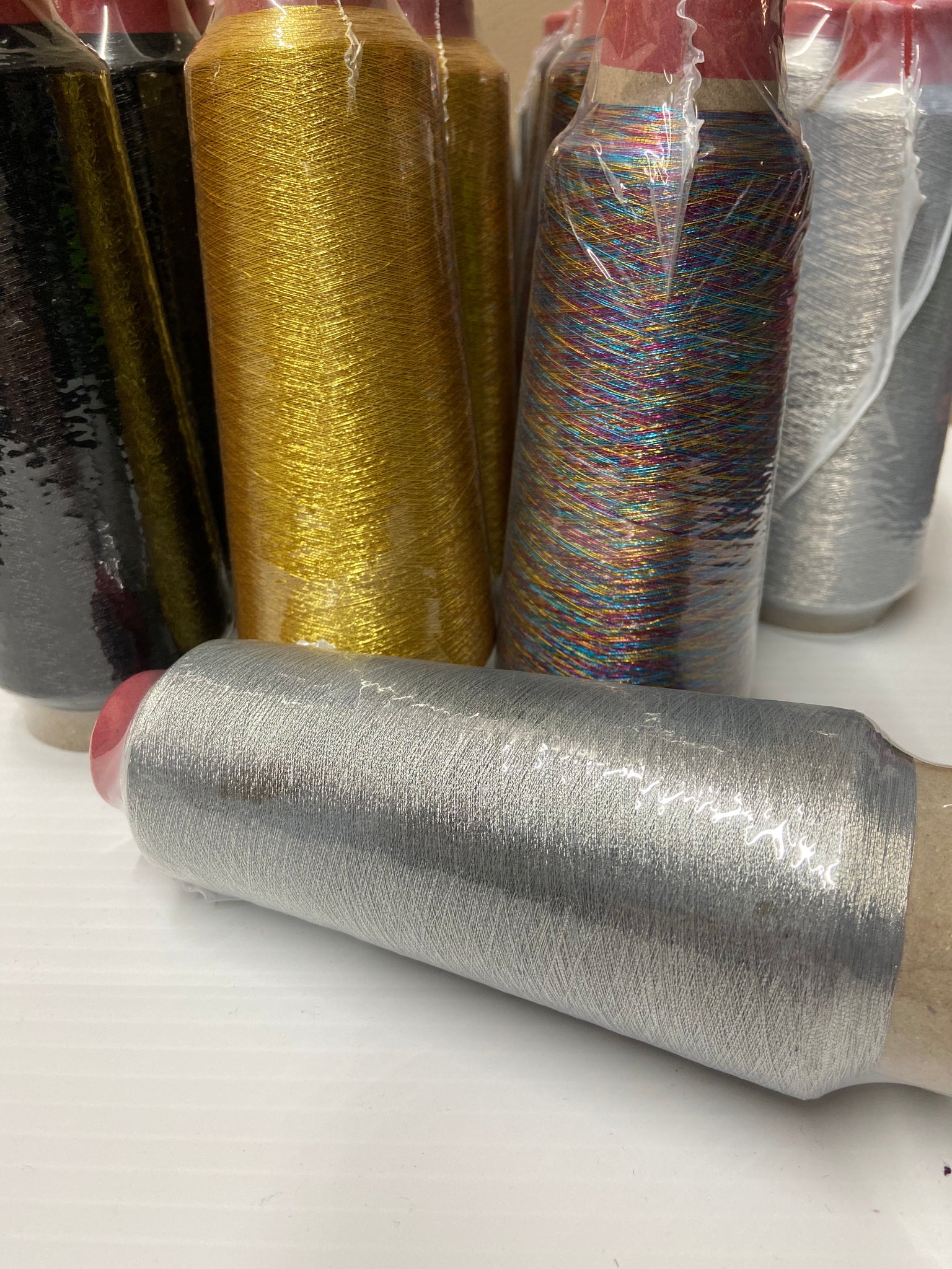 100% Spun Polyester Great Metalic colors, excellent seam strength, consistent sew ability, mildew and UV light tolerant, shrink and abrasion resistant. Thread is ideal for decorative applications
