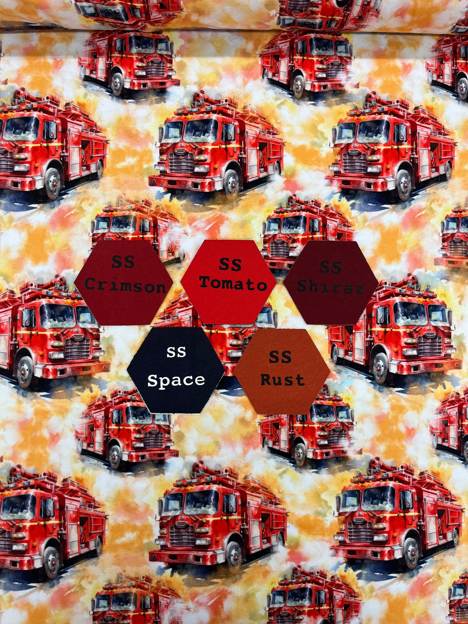 On the Move Series- Fire Trucks on Cotton Lycra Jersey