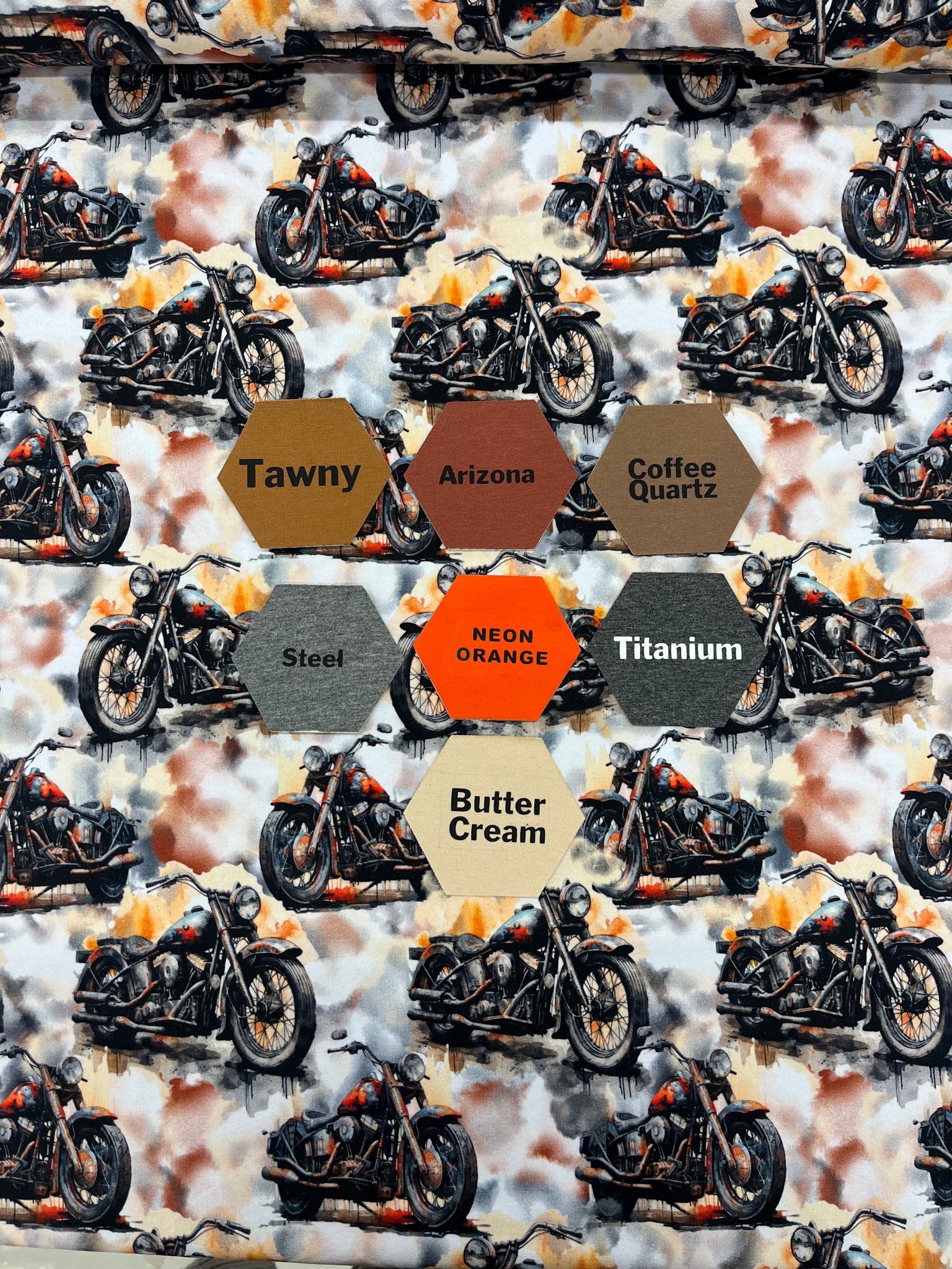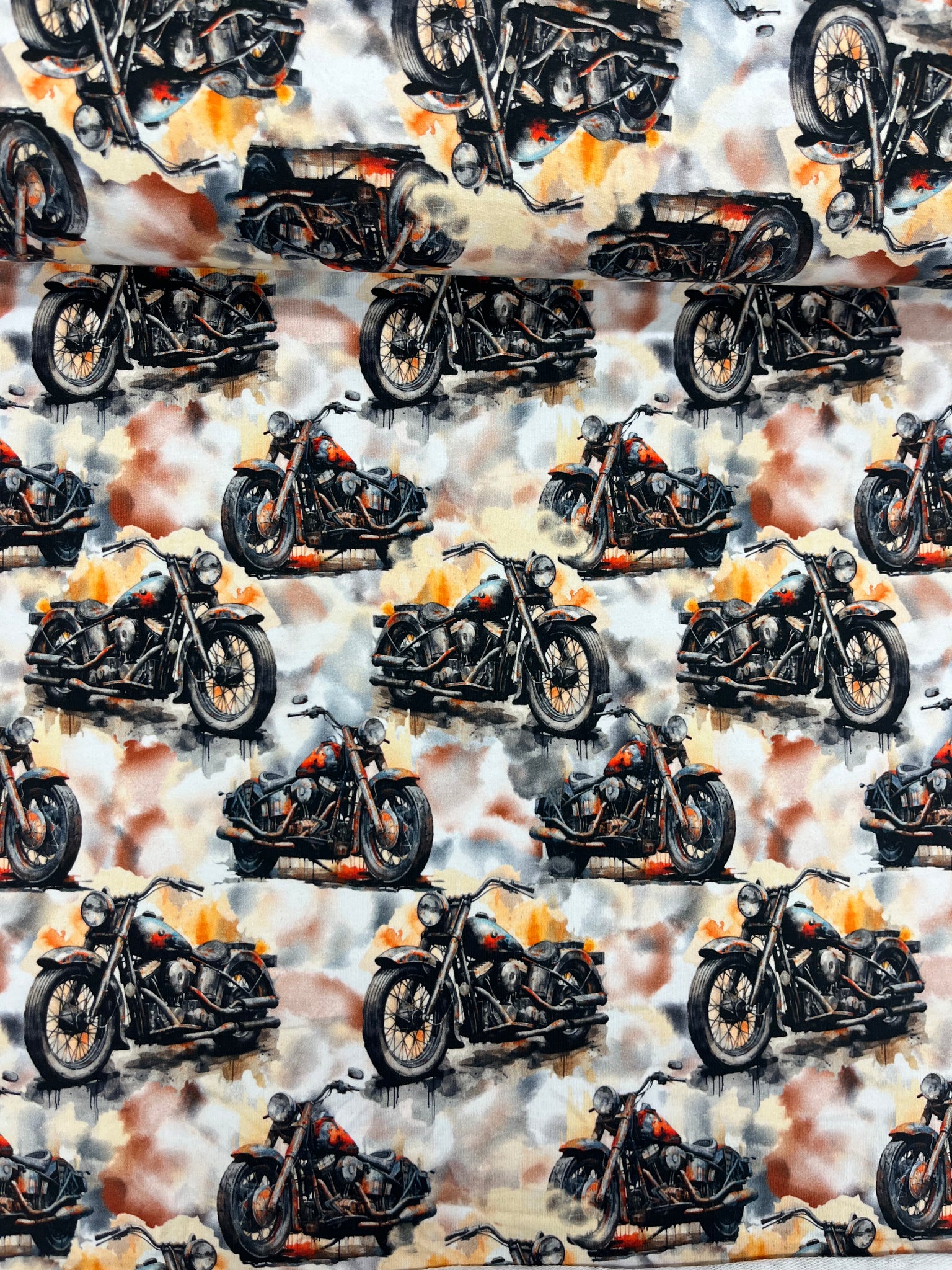 On The Move Series -Motorcycles on Orange Grunge French Terry