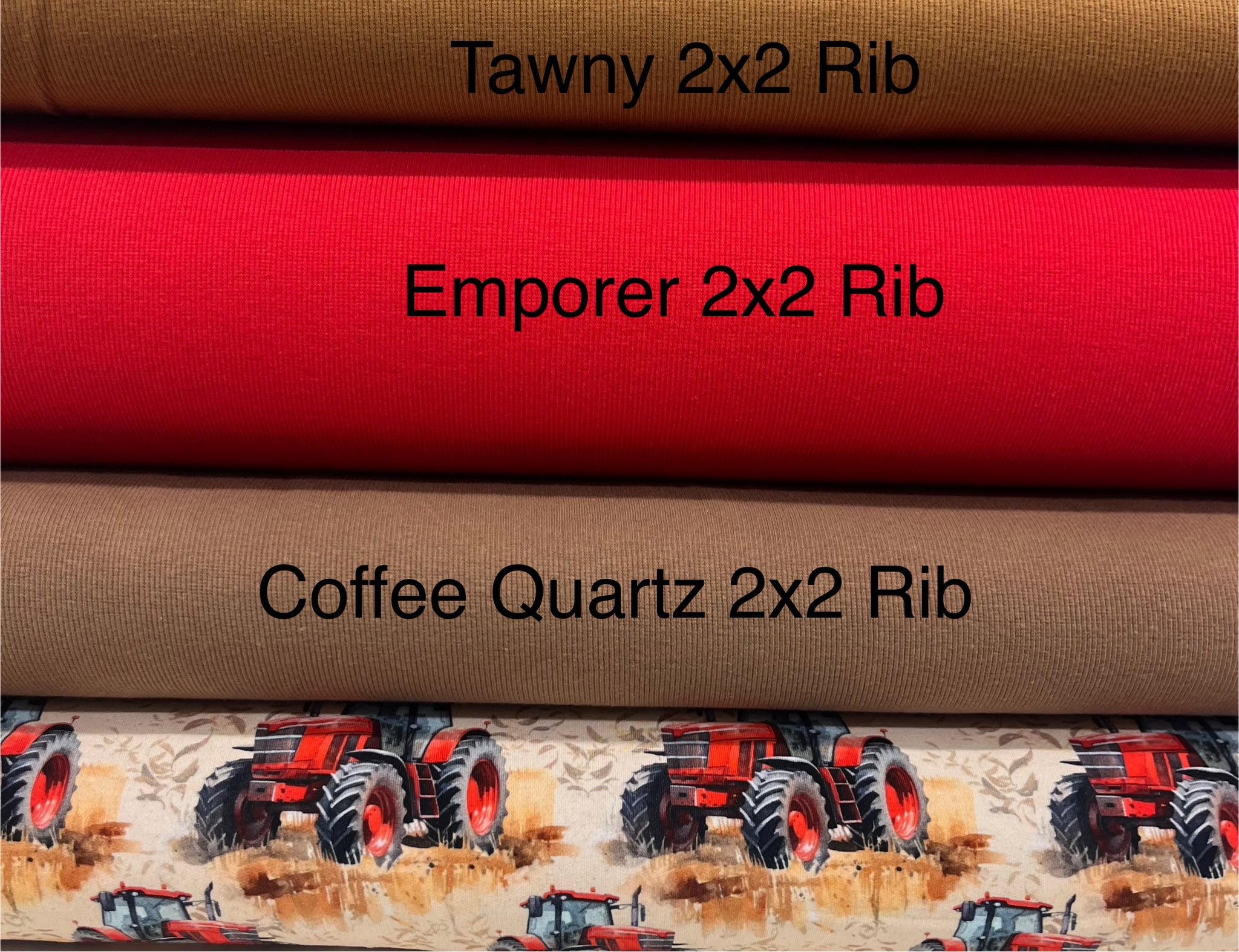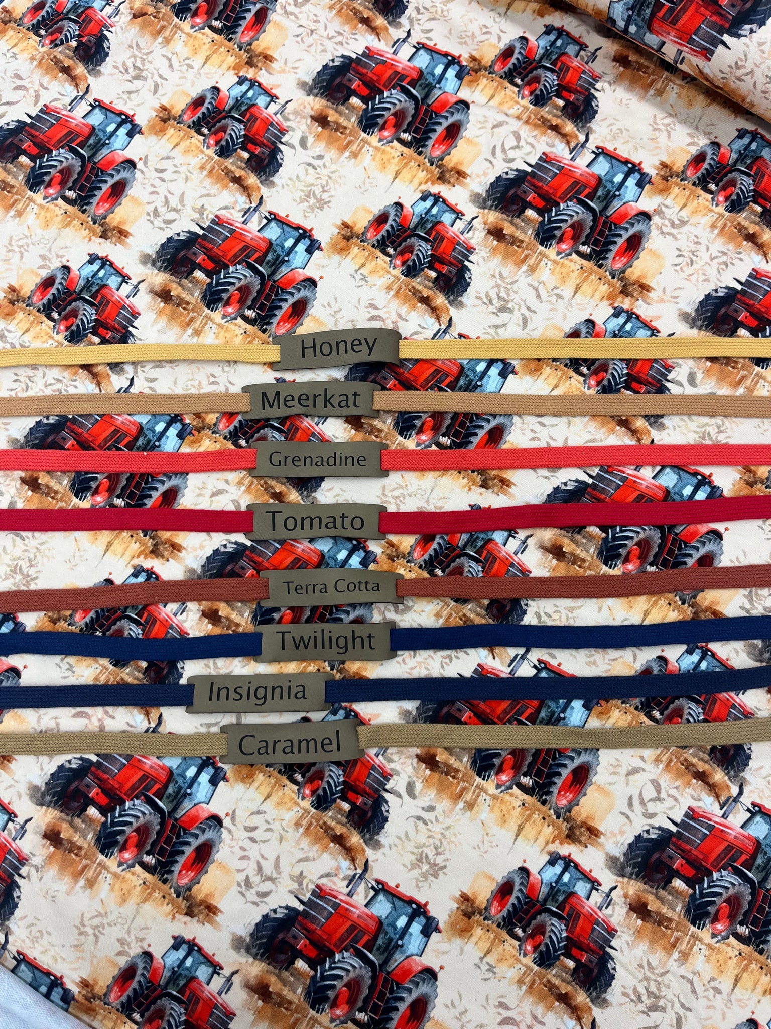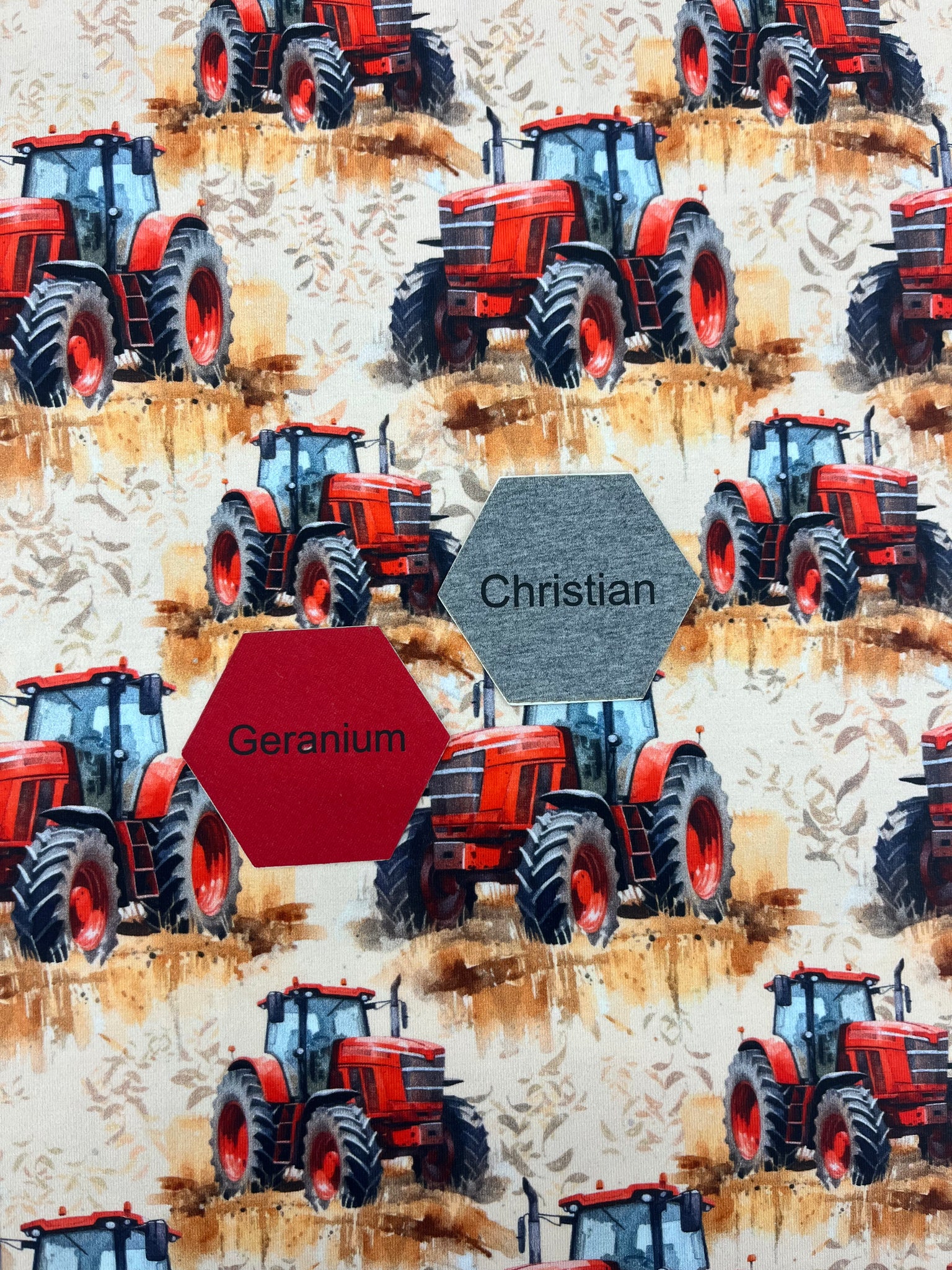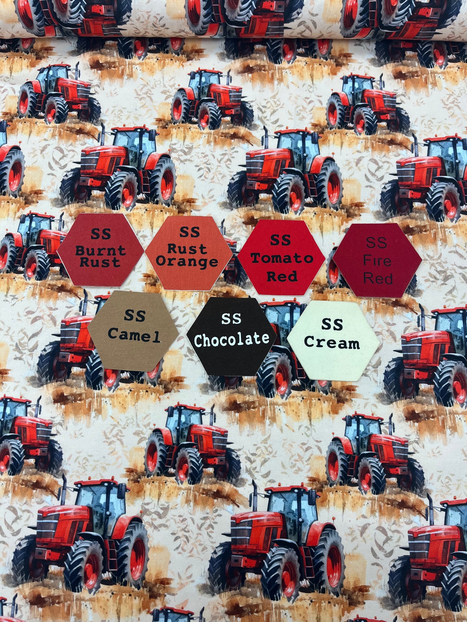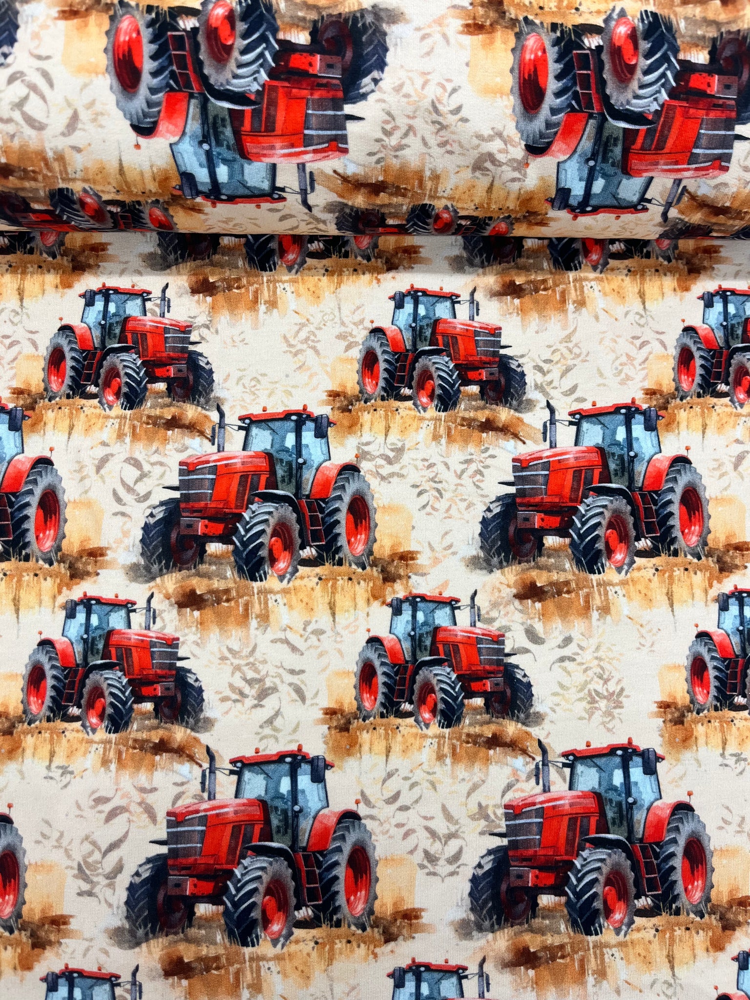 On the Move Series- Red Tractors on Cotton Lycra Jersey
