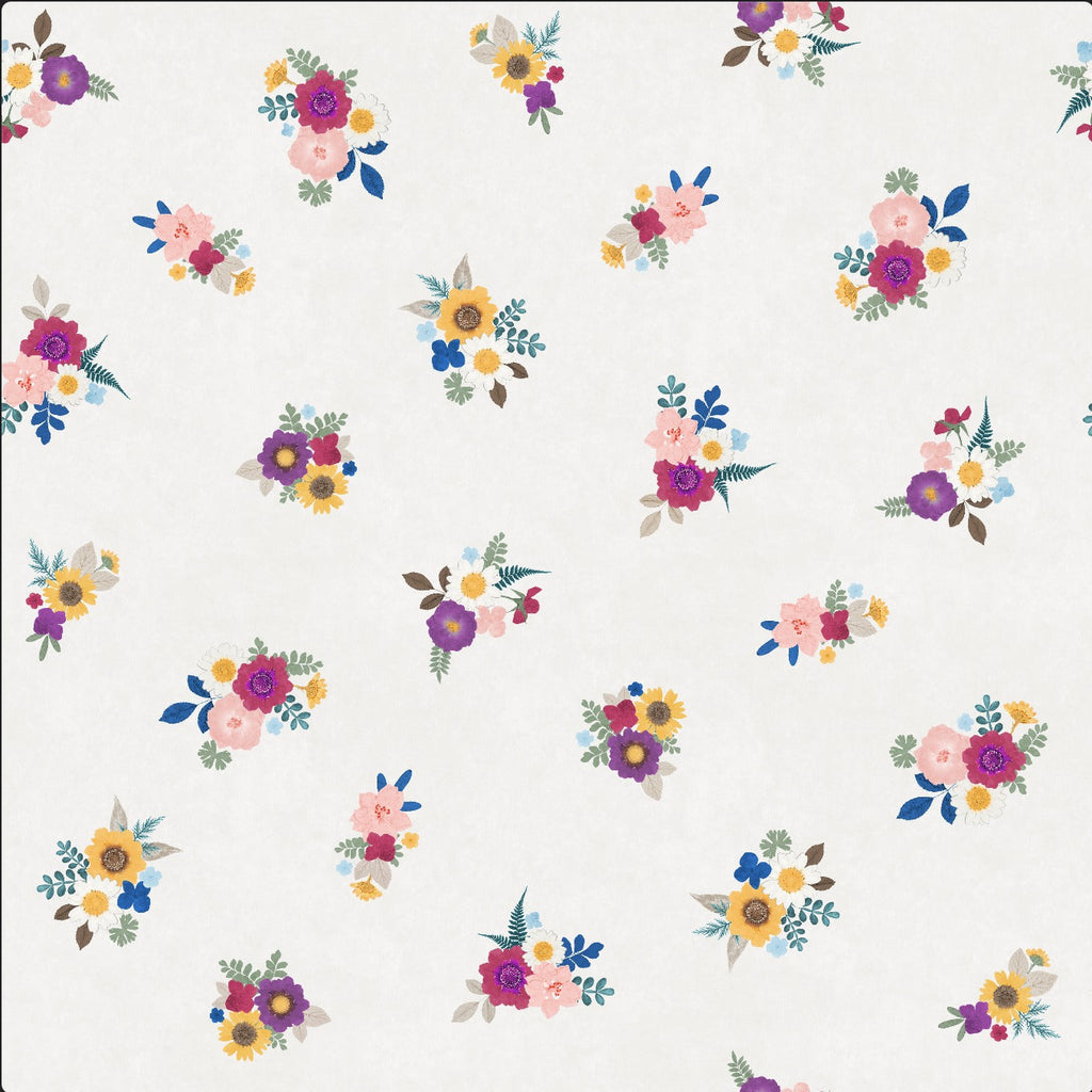 LAST CUT - R18 - Bloomy Bouquet in White on French Terry - .69M - $20.00
