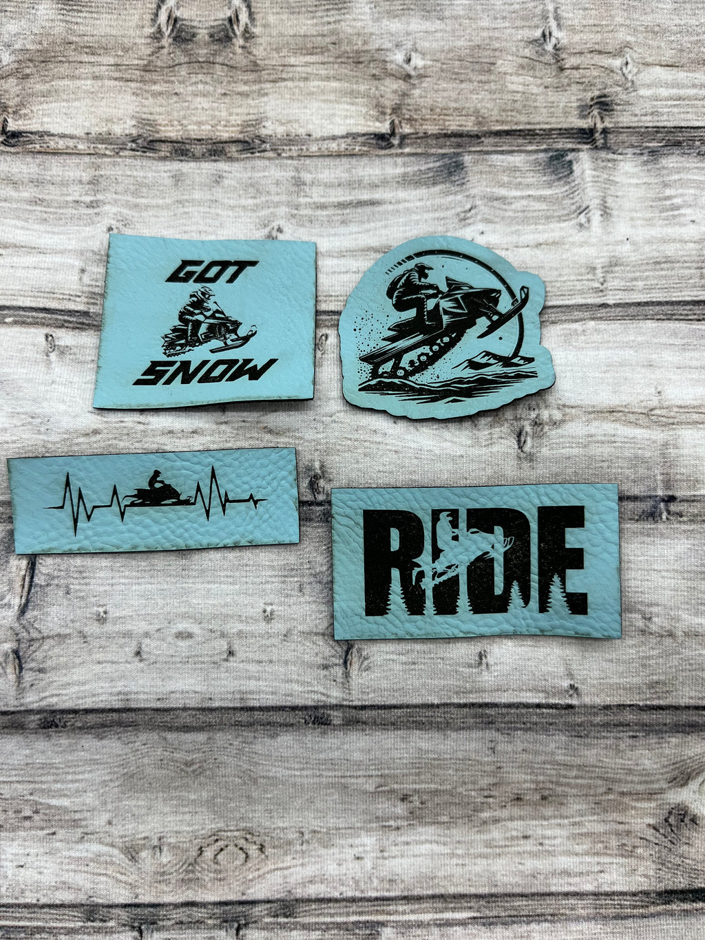 Leatherette Tags - Snowmobiling (Pack of 4) - Black/Silver - $4.00