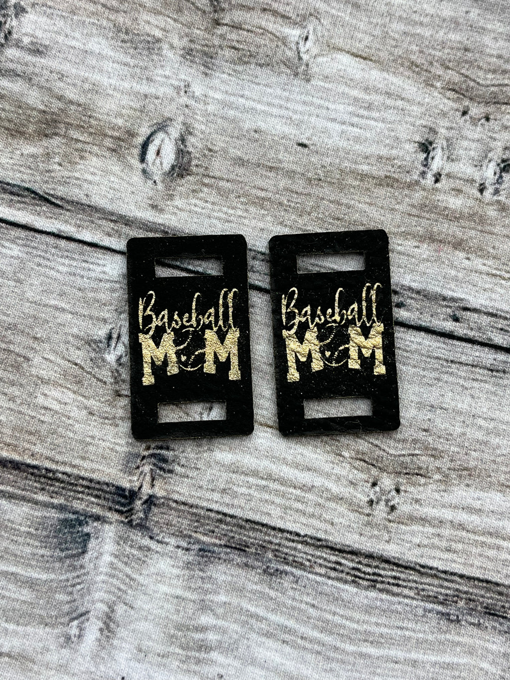 Leatherette Tags - Drawstring Tags - Baseball Mom Black/Gold - $1.00