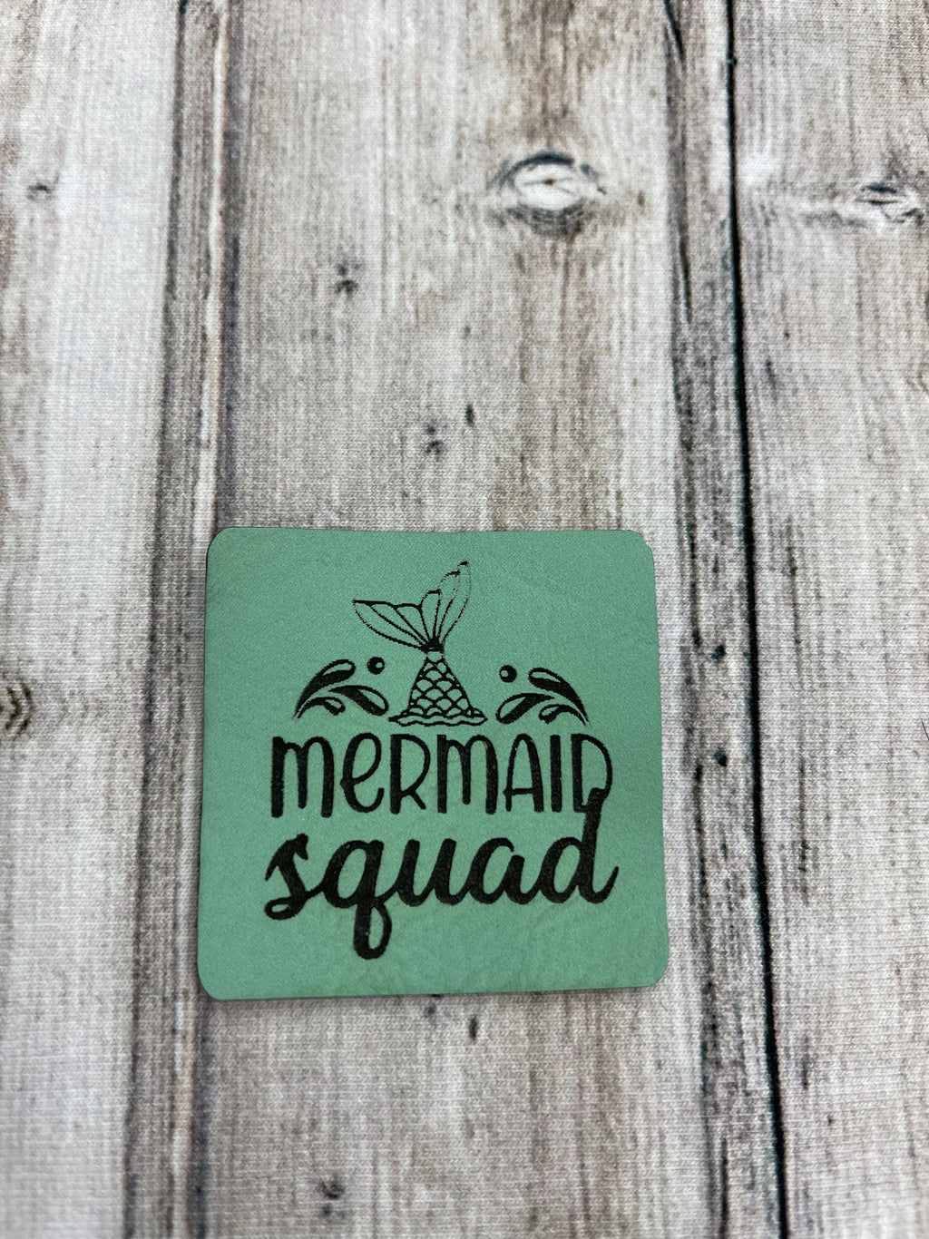 Leatherette Tags - Mermaid Squad (1.5x1.5") (Teal) - $1.00
