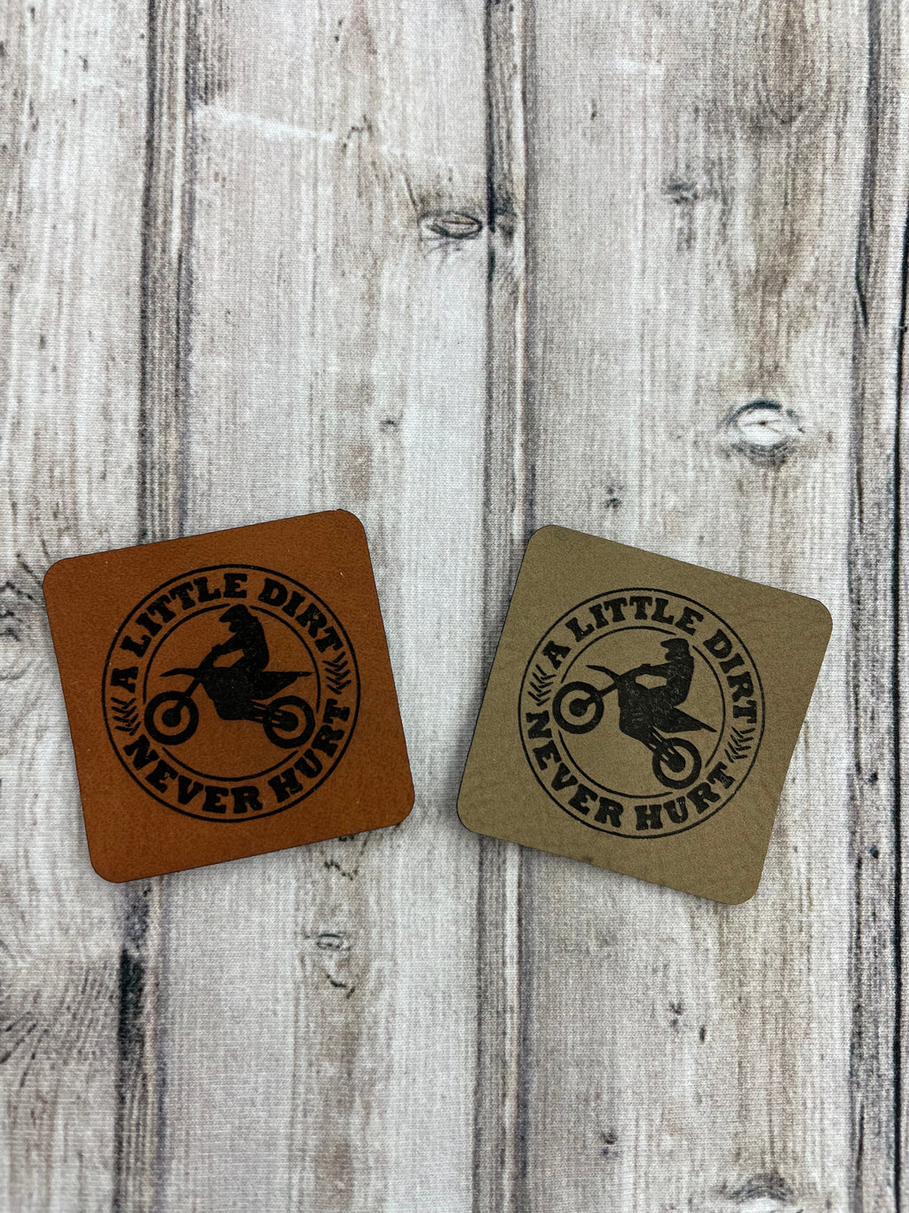 Leatherette Tags - A Little Dirt Never Hurt (1.5") Mixed Pack of 2 - $1.75
