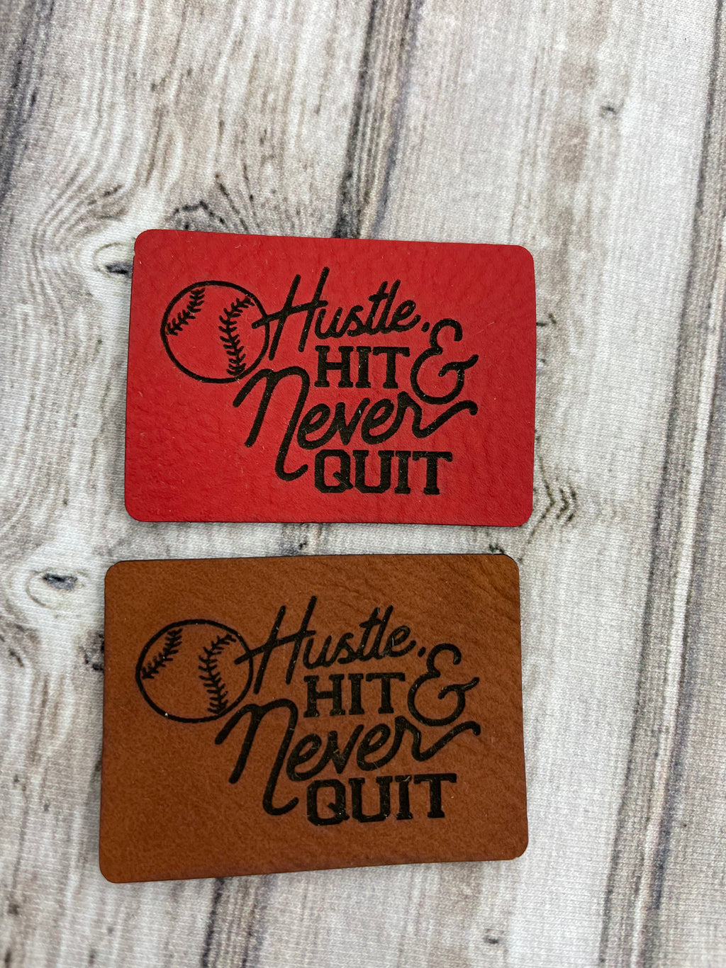 Leatherette Tags - Hustle, Hit & Never Quit (1.25x1.75") (Rawhide) - $1.25