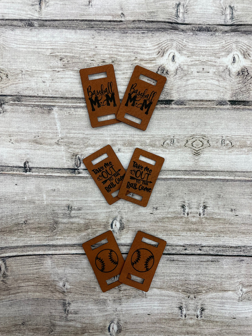 Leatherette Tags - Drawstring Tags - Take Me Out to the Ballgame (Rawhide) - $1.00