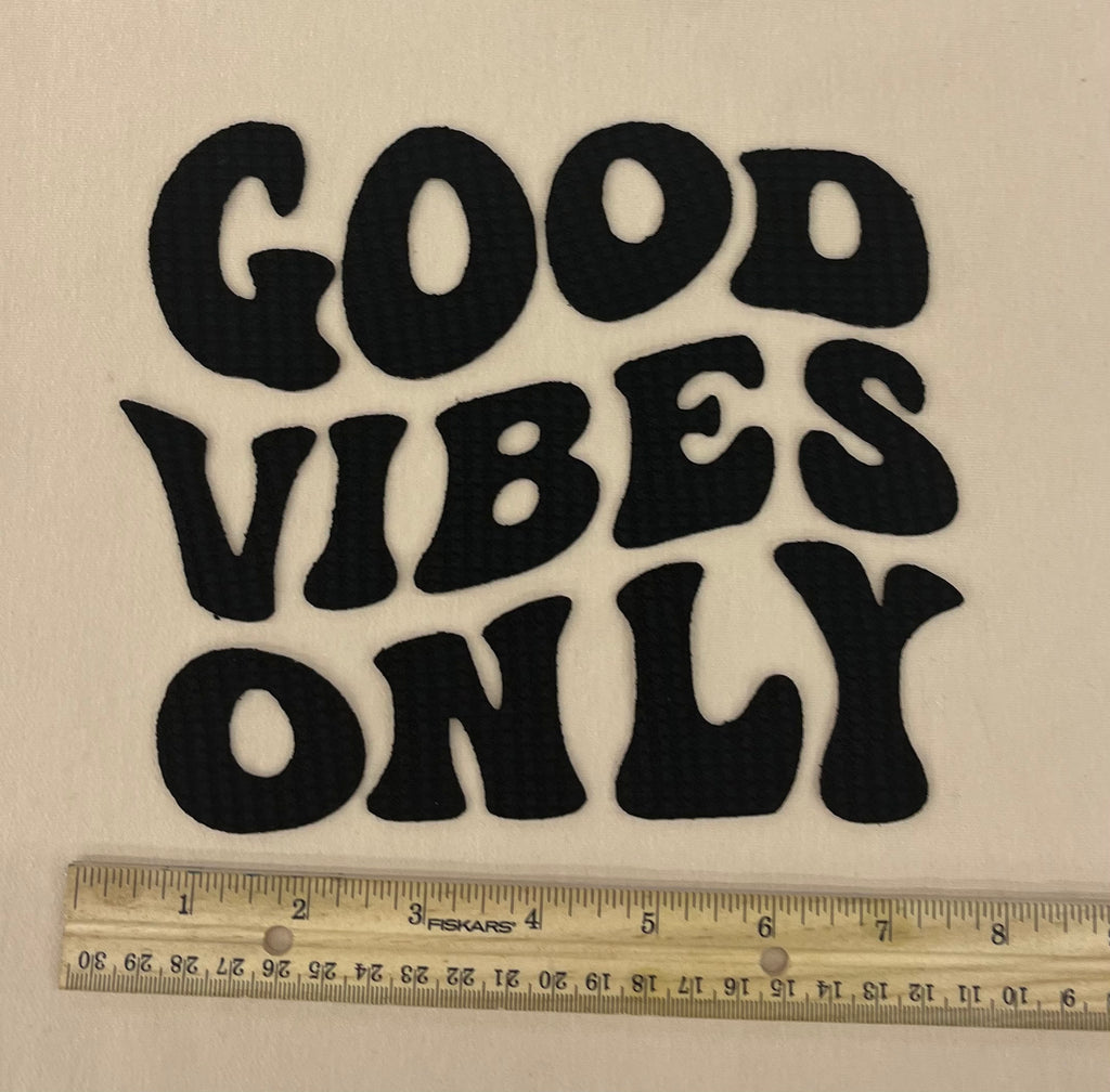 Applique - GOOD VIBES ONLY - Black waffle - $3.50