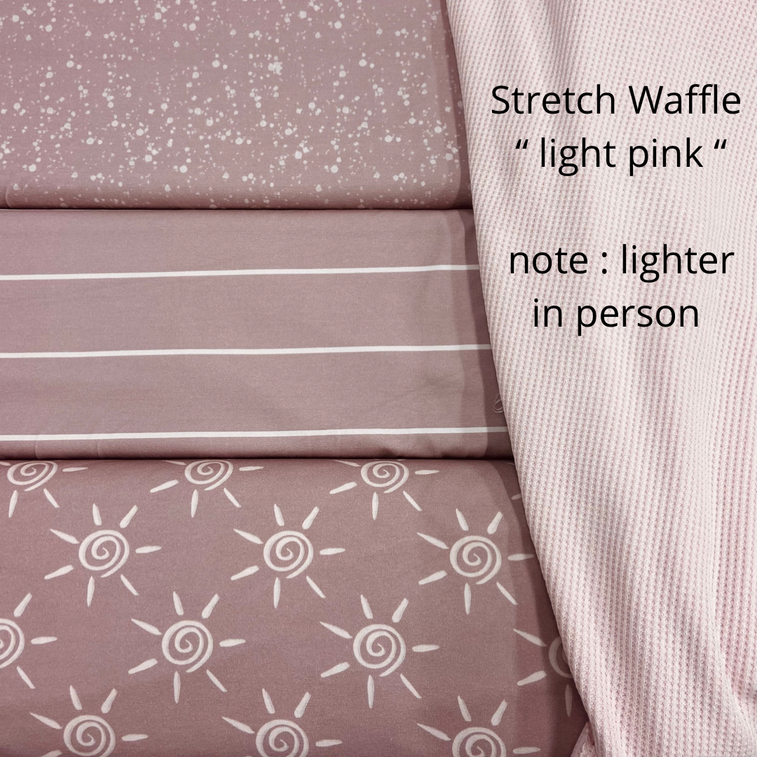 Confetti FT and Rib - Oatmeal or Chai Stretch Waffle - Light Pink Low pile fleece - Gardenia Thread - Powder, Nude or Ecru |