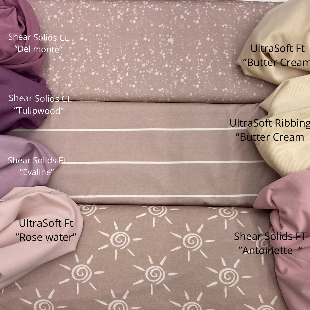 Confetti FT and Rib - Oatmeal or Chai Stretch Waffle - Light Pink Low pile fleece - Gardenia Thread - Powder, Nude or Ecru |