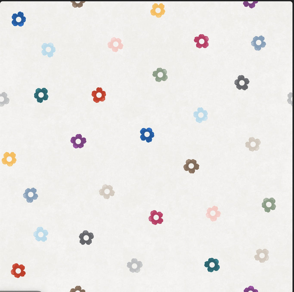 R18 - Floral Polka Dots in White on French Terry - $15.00