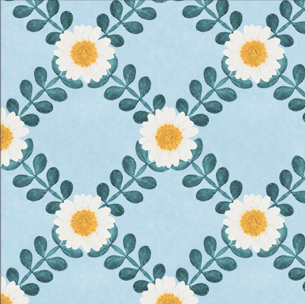 R18 - Daisy Trellis in Sky Blue on French Terry - $15.00