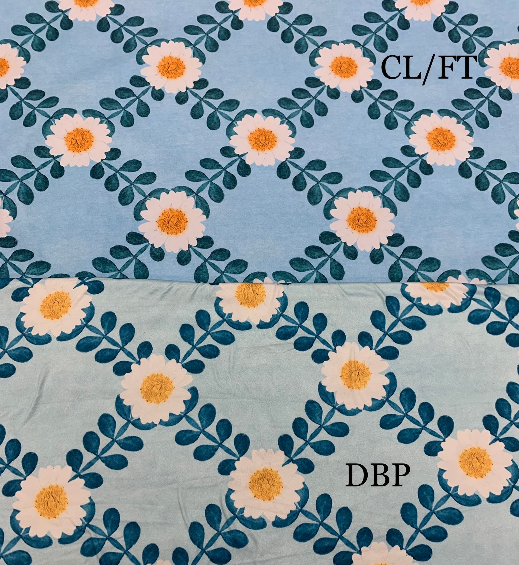 R18 - Daisy Trellis in Sky Blue on French Terry