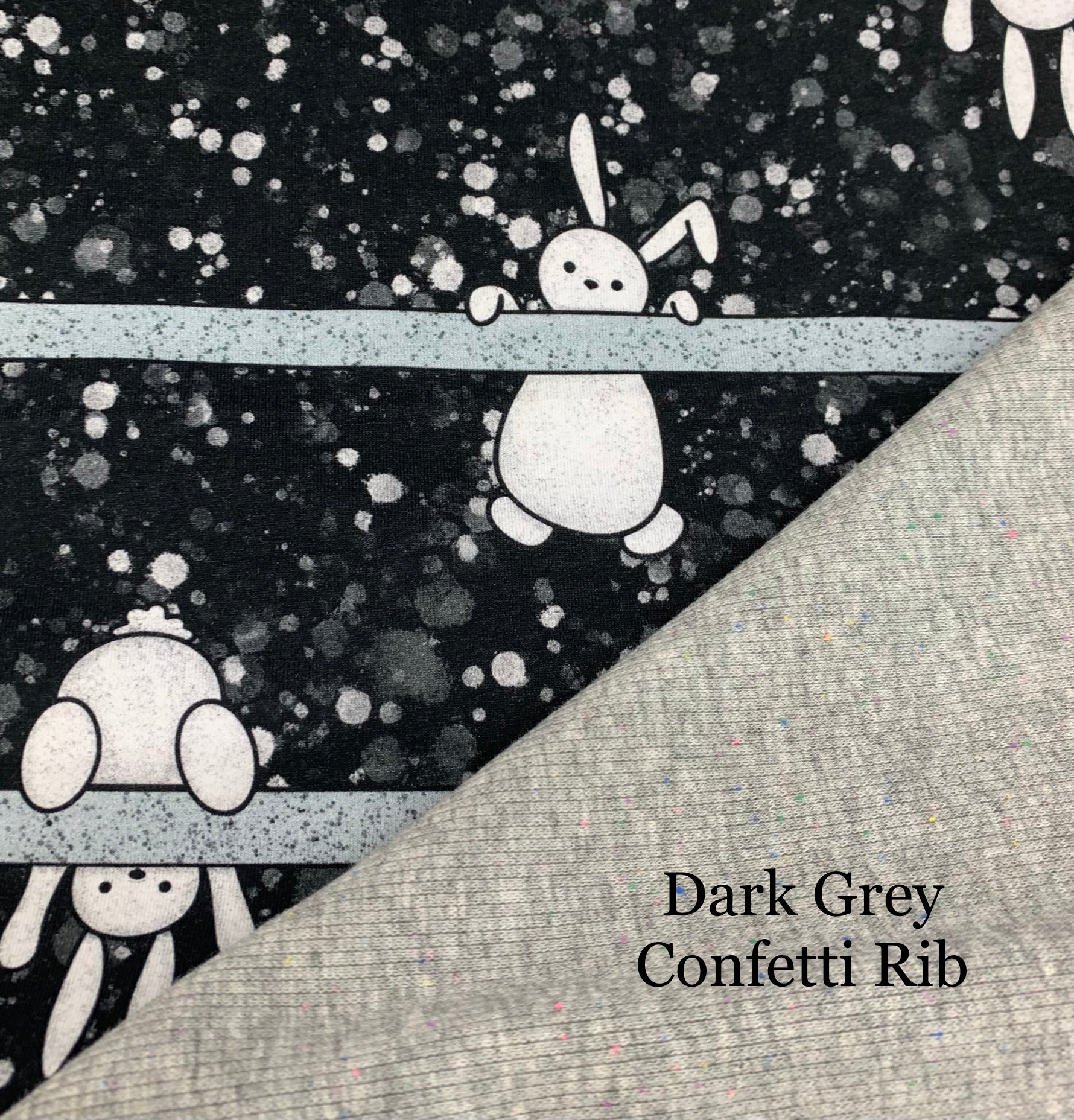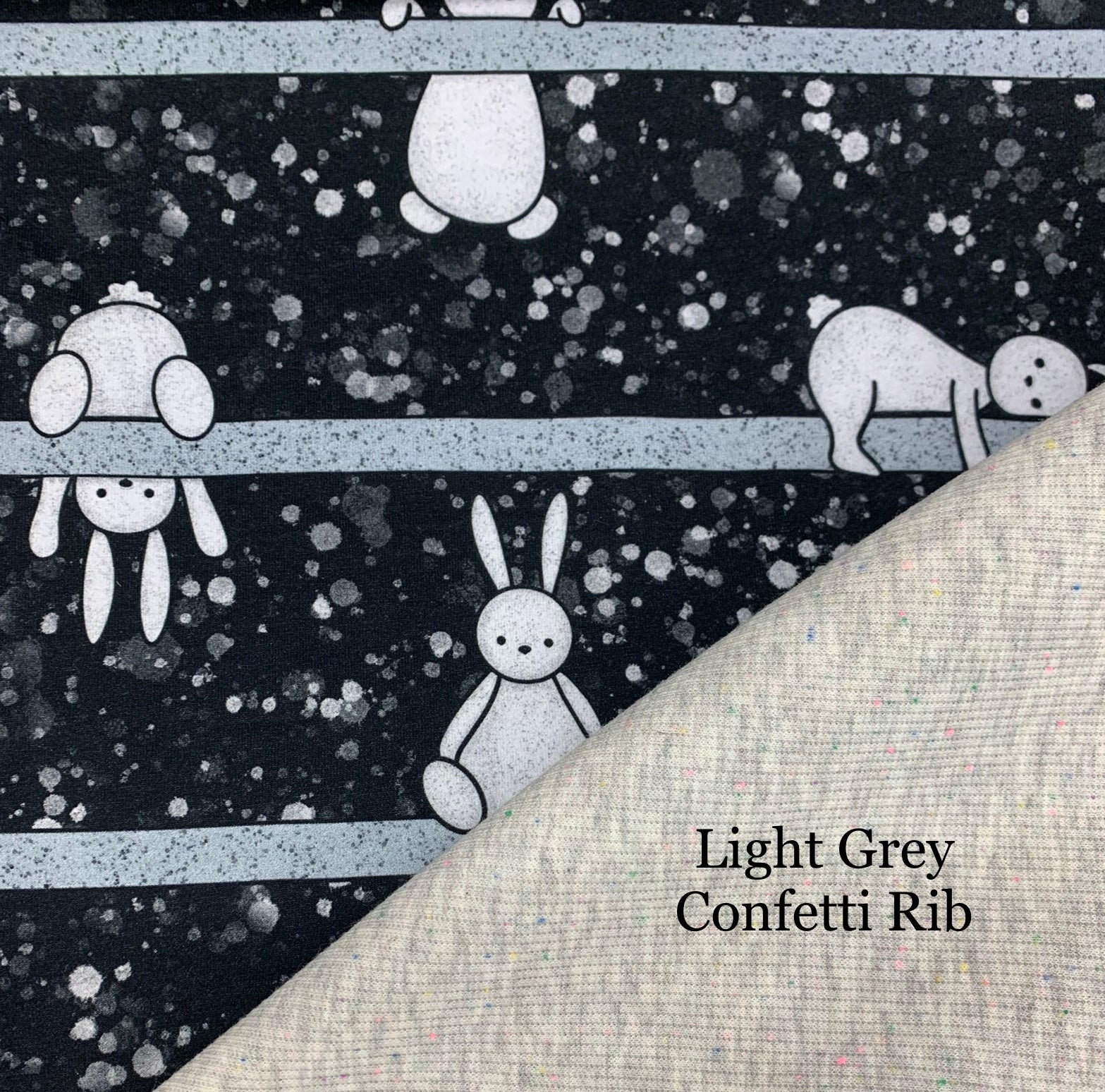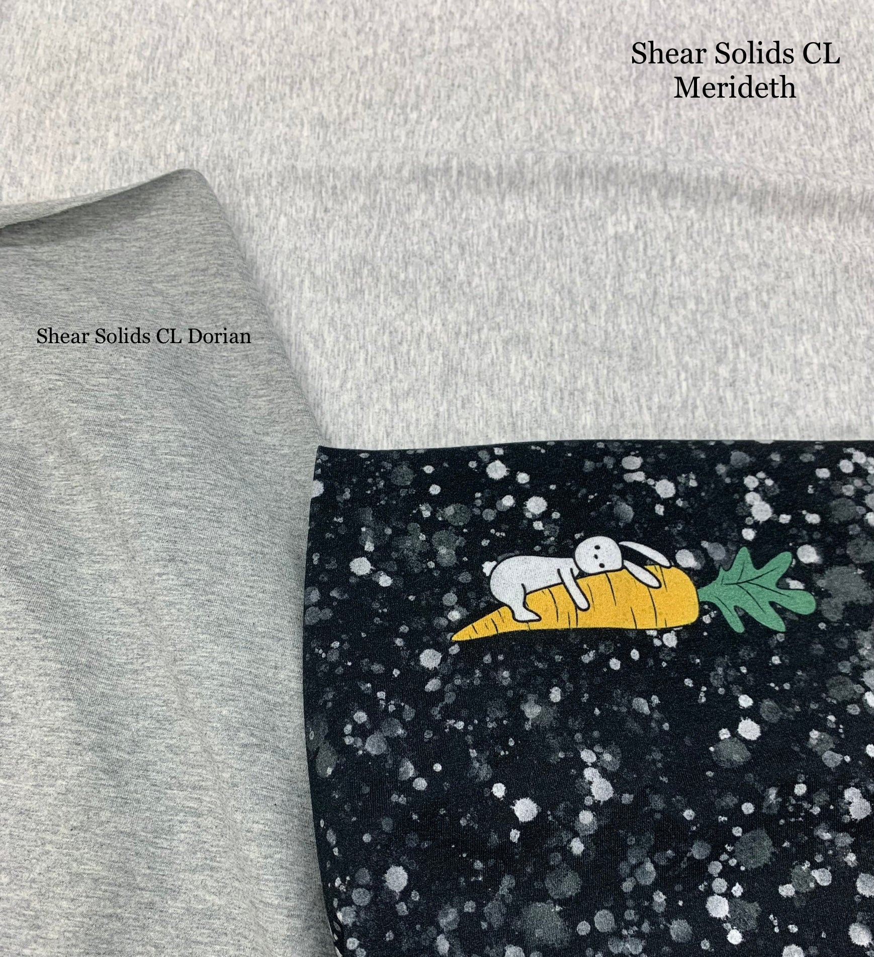 Shear Matchups Shear Solids Cotton Lycra: Merideth, Dorian Shear Confetti Rib: Grey, Light Grey |
