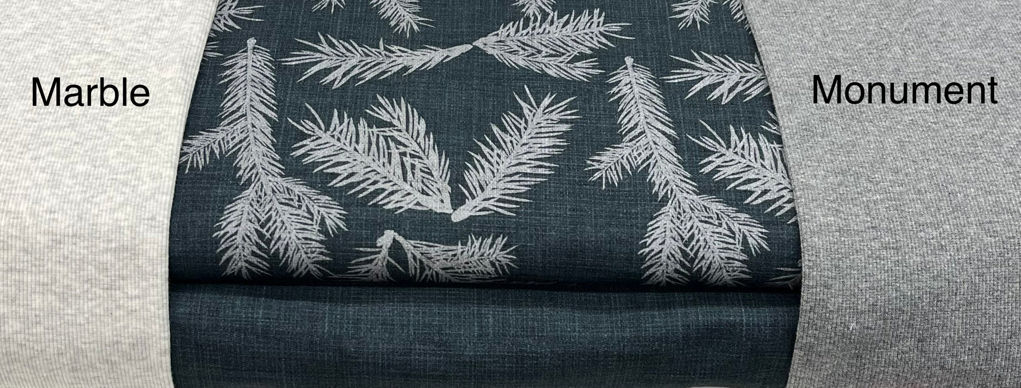 *We do not feel that we have a good coordinating green for this printShear Comfort Bamboo | Heathered Grey, New Maroon, Cypress |