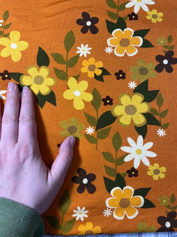 Retro Round - Floral Double Border Print - Rust on Bamboo Spandex