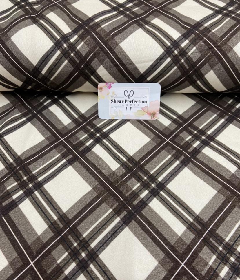 R15 - Chocolate Sloped Plaid - on Brushed French Terry (sold by the meter) - $15.00