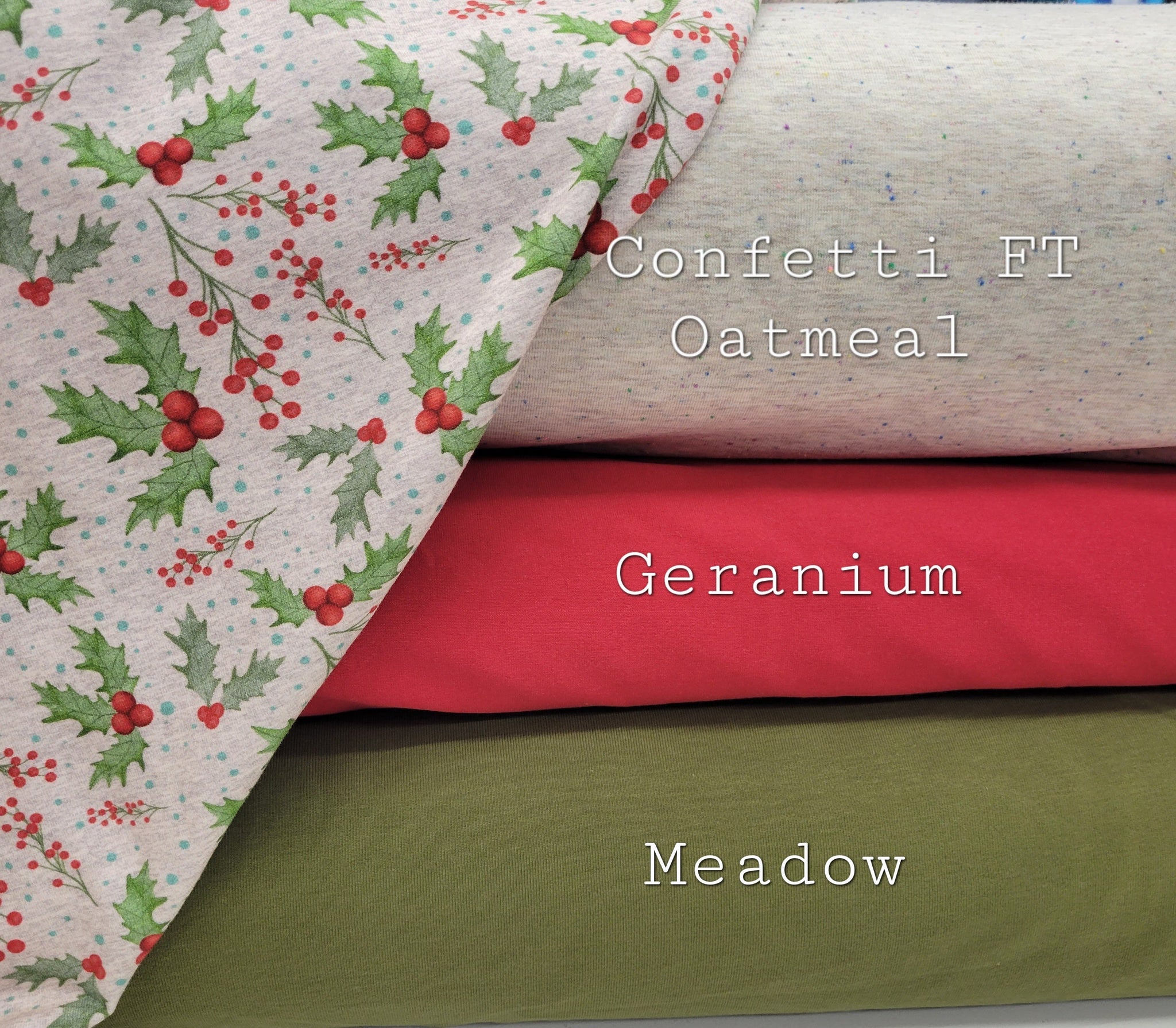 Meadow, Geranium, Confetti Oatmeal. |