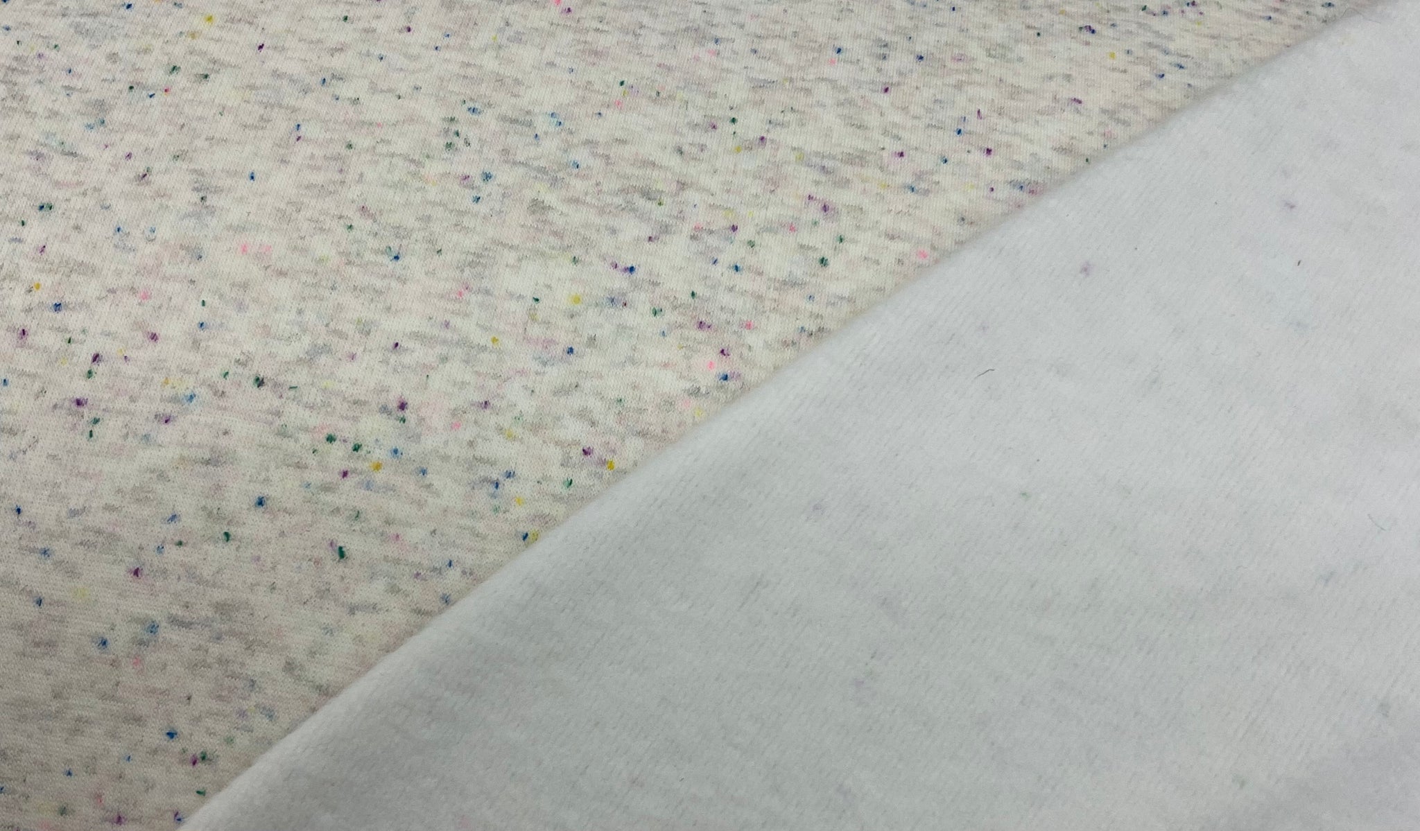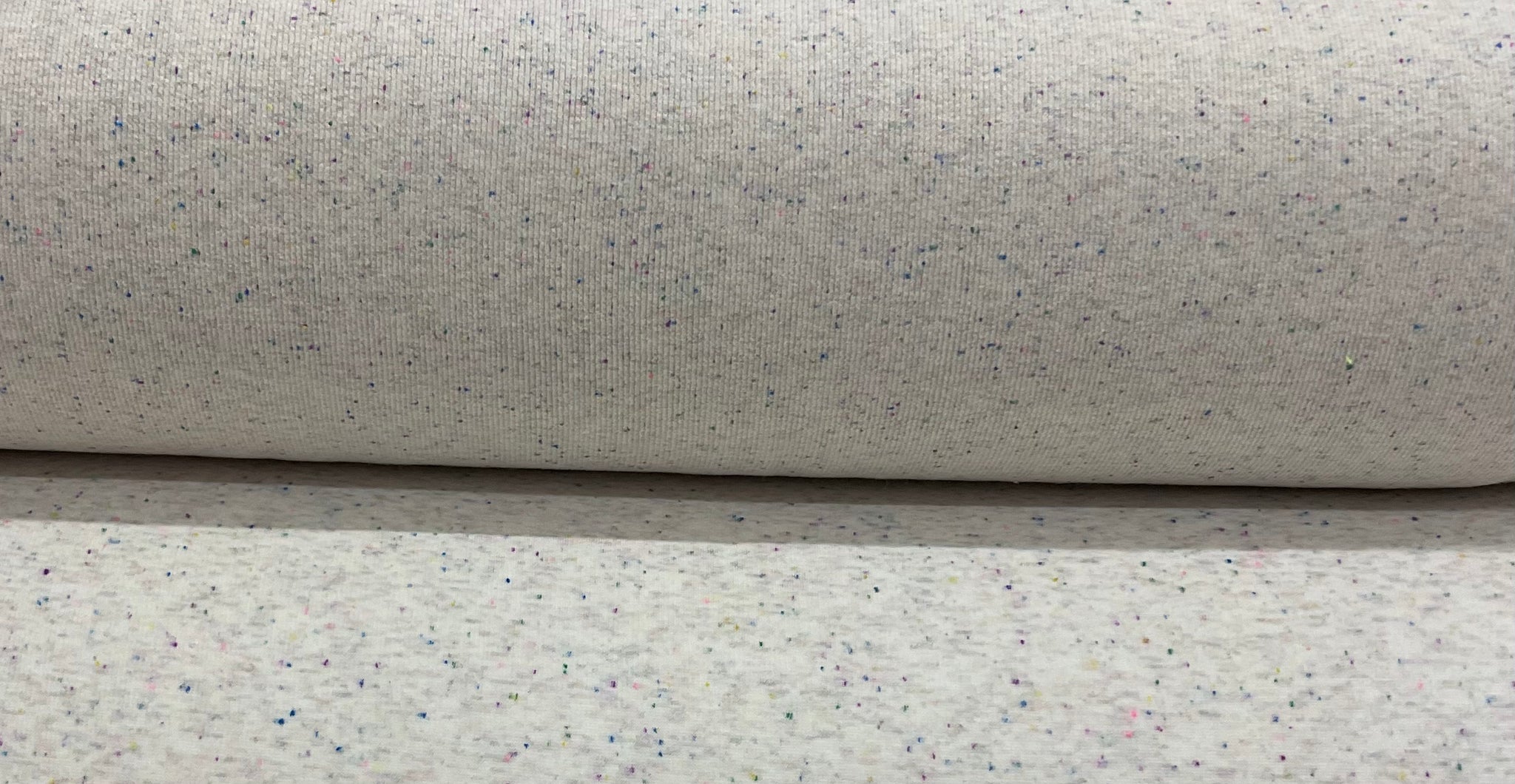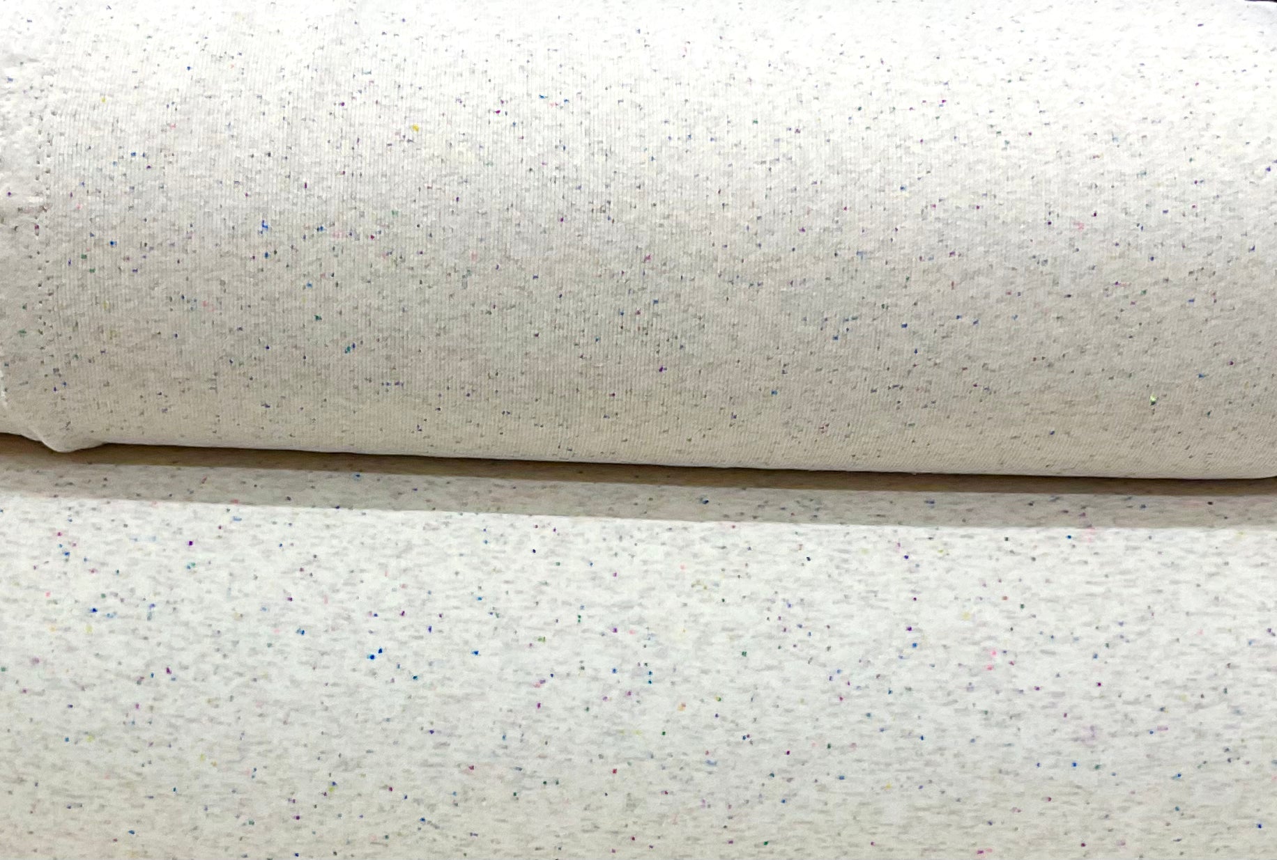 Description: Super Cute french terry with rainbow yarn woven into the fabric for a " Confetti" look. This is a brushed back French terry (white backed) Check our our Shear Solids FT and Posh French Terry colorways for fun matchups! The options are endless. |