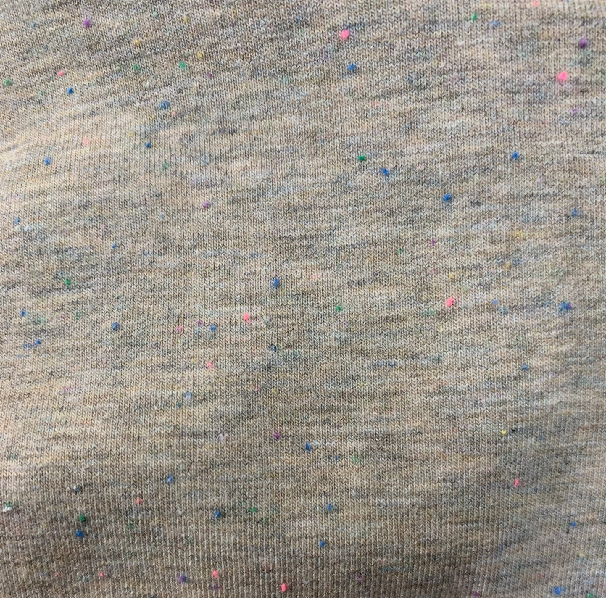 Description: Super Cute french terry with rainbow yarn woven into the fabric for a " Confetti" look. This is a typical looped back French terry ( the loops on the backside are white) |