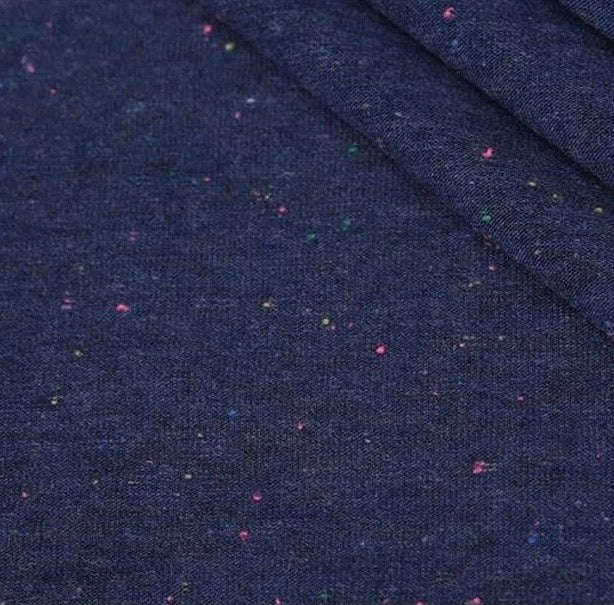 Description: Super Cute french terry with rainbow yarn woven into the fabric for a " Confetti" look. This is a typical looped back French terry ( the loops on the backside are white) |