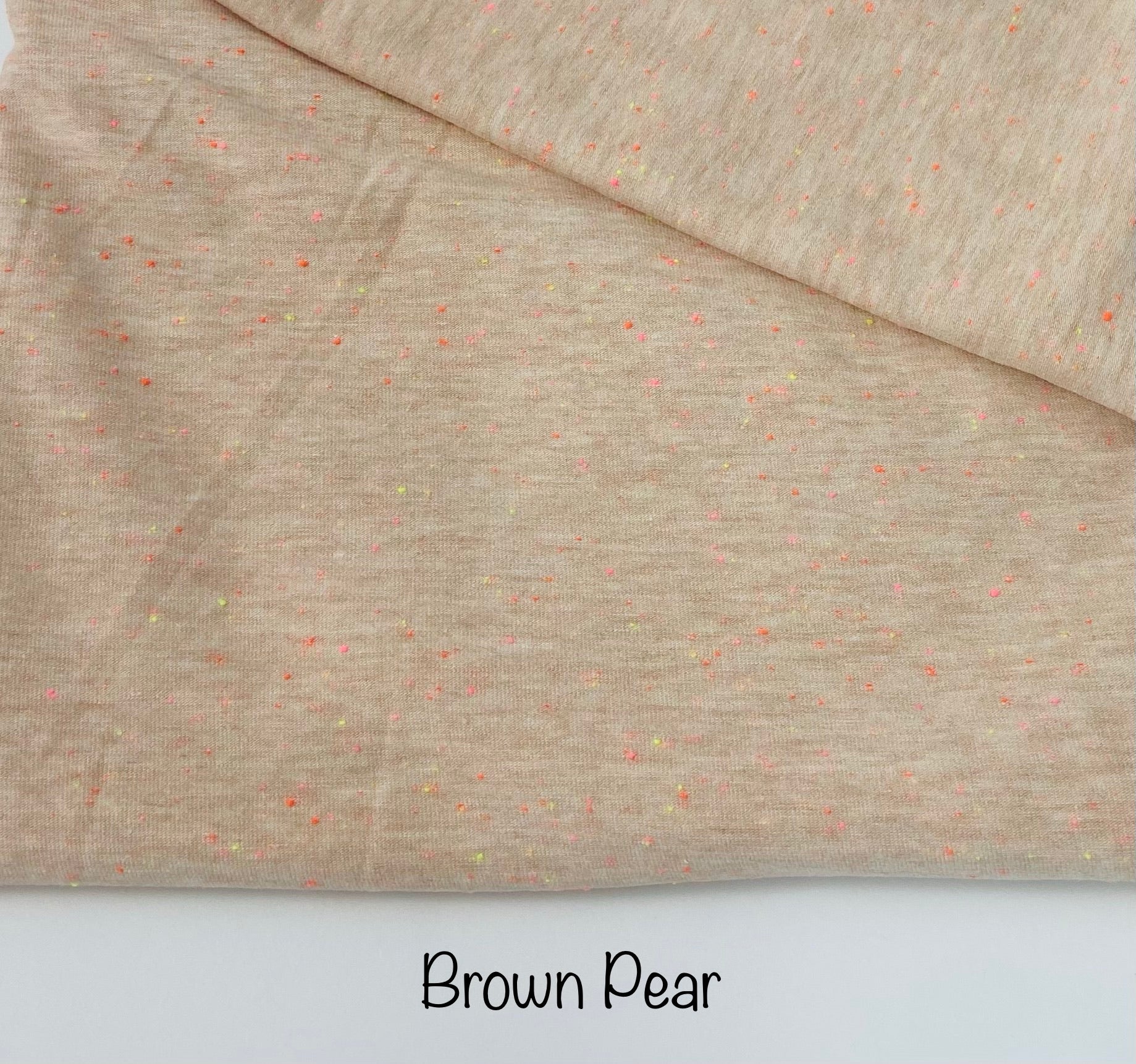 Description: Super Cute Jersey with neon yarn woven into the fabric for a " Confetti" look. This is a dyed Jersey with the confetti yarns with a delicious summer weight ! Perfect for tees, dresses, tanks and other light garments! |
