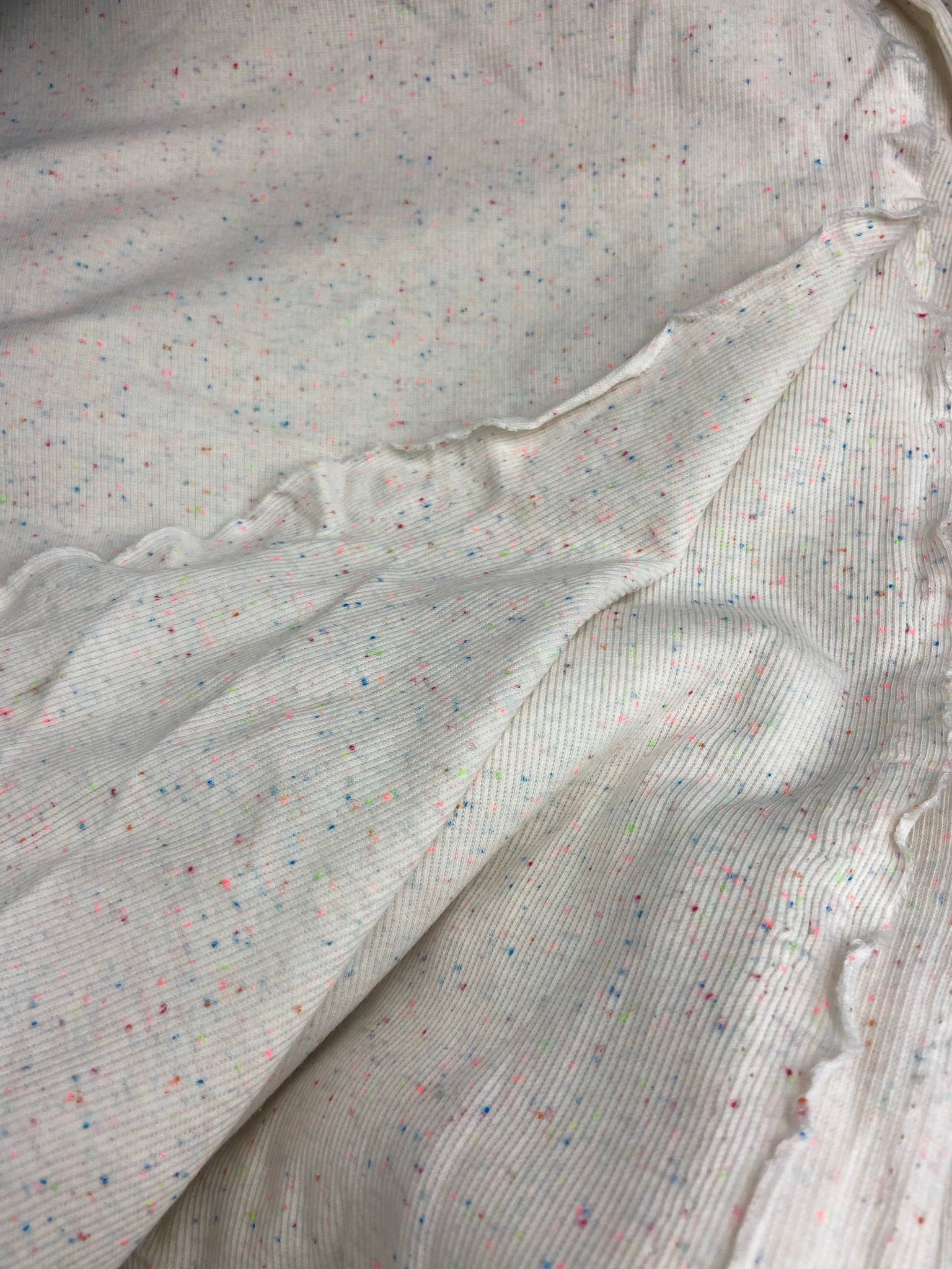 Description: Super Cute 2 x 2 Rib Knit with rainbow yarn woven into the fabric for a " Confetti" look. Perfect Match for the confetti french terry with the same name. But this is more than just cuffs and bands fabric - would make awesome tank tops, leggings ( with encased elastic), dresses, beanies and so much more. |