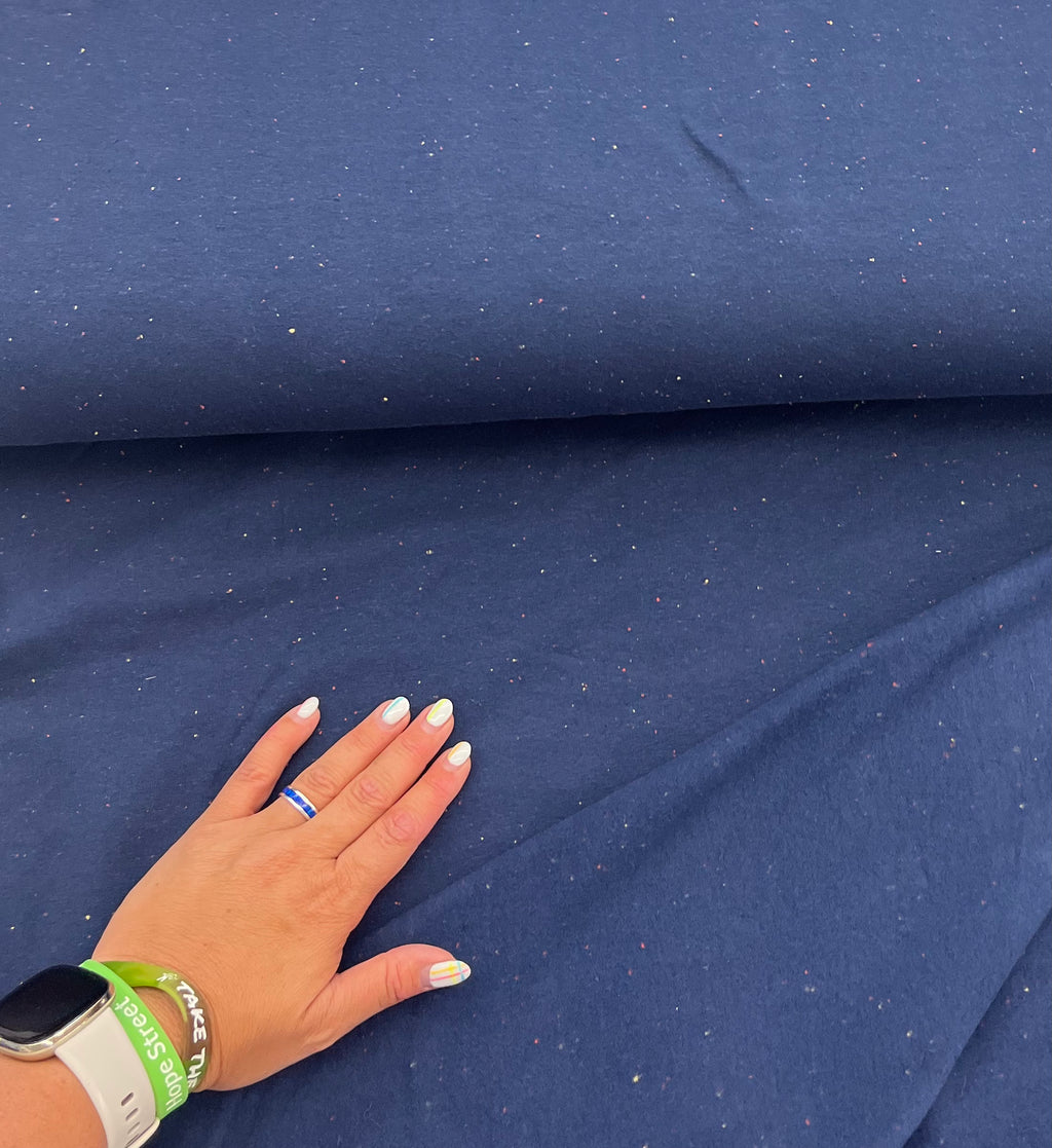 Brushed Confetti French Terry (Sample)- Navy - Sold by the Meter - $10.00