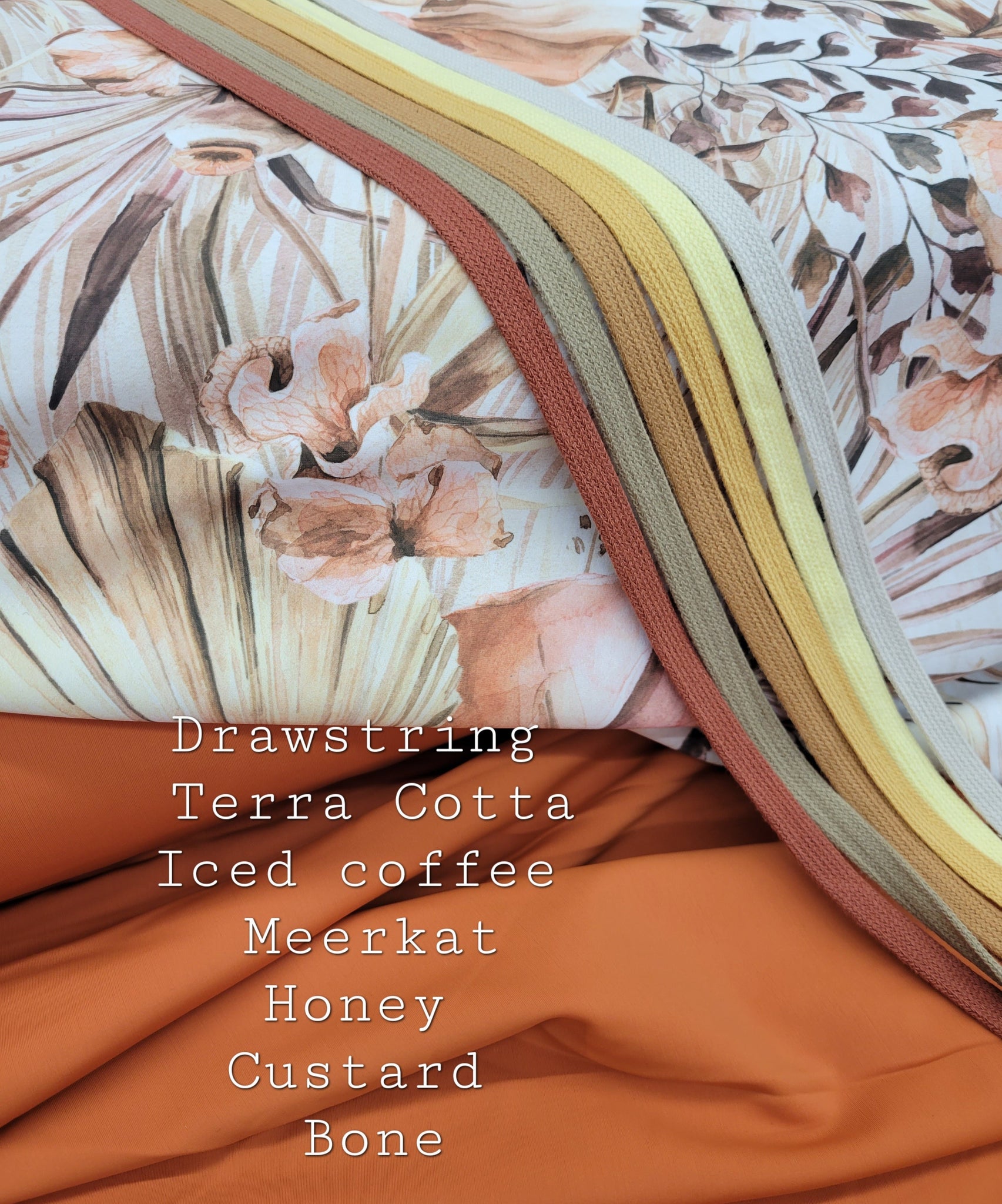 The Fabric Options Available for this round are listed below - PLEASE note that the color will vary between bases.