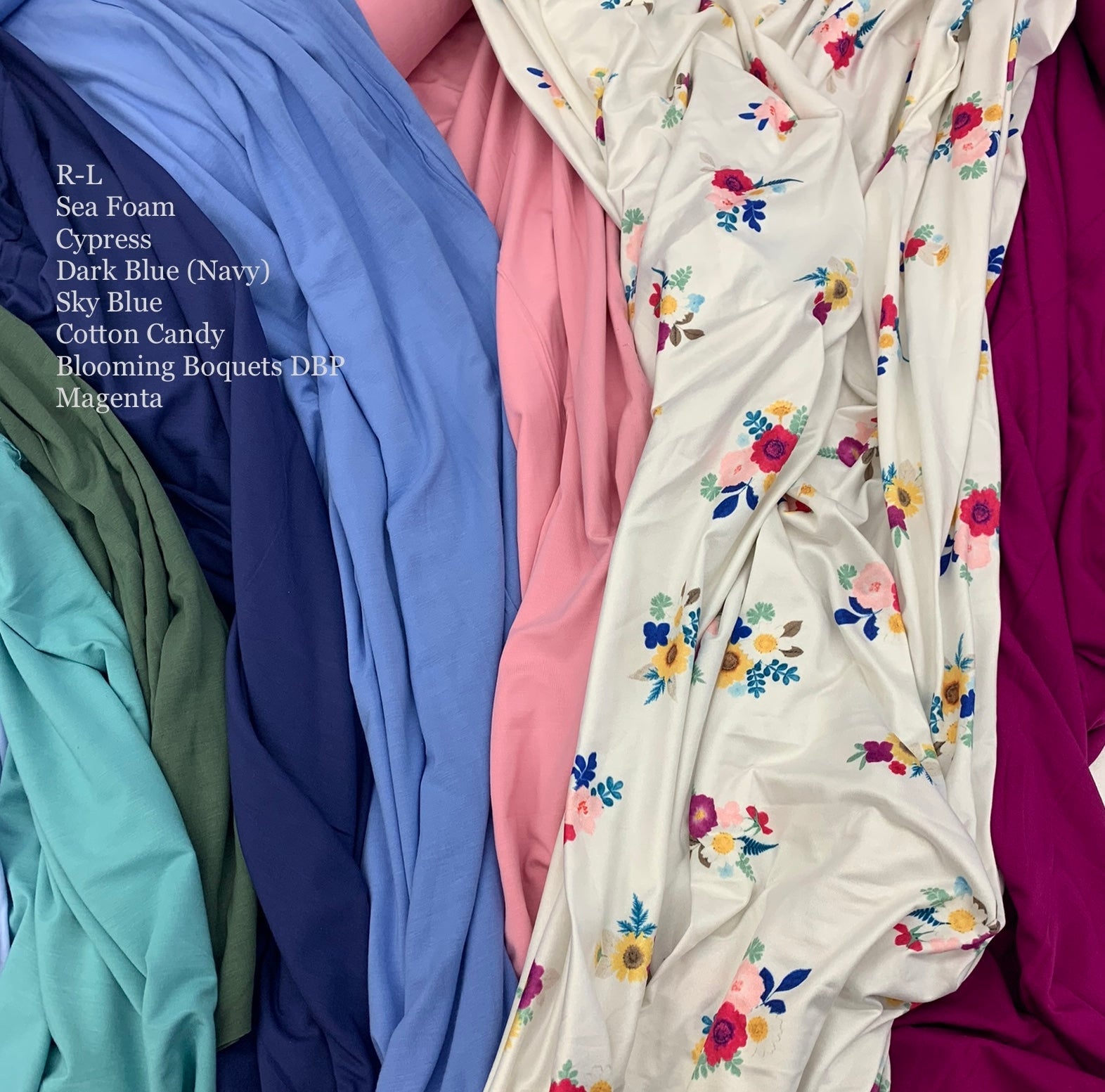 For DBP only (similar texture and drape): Shear Comfort Bamboo: Sky Blue, Cotton Candy, Sea Foam, Magenta, Dark Blue (Navy) |