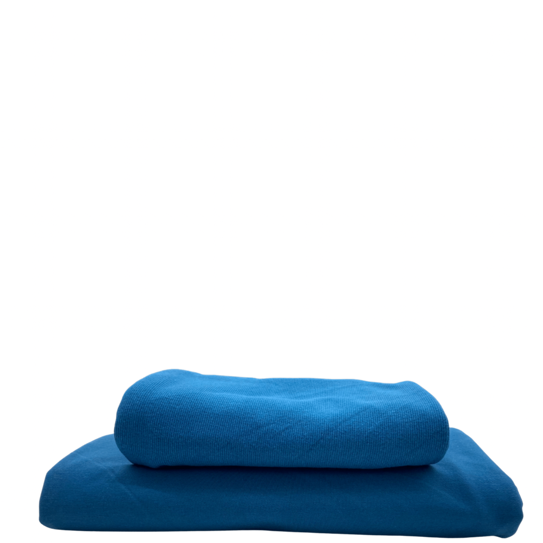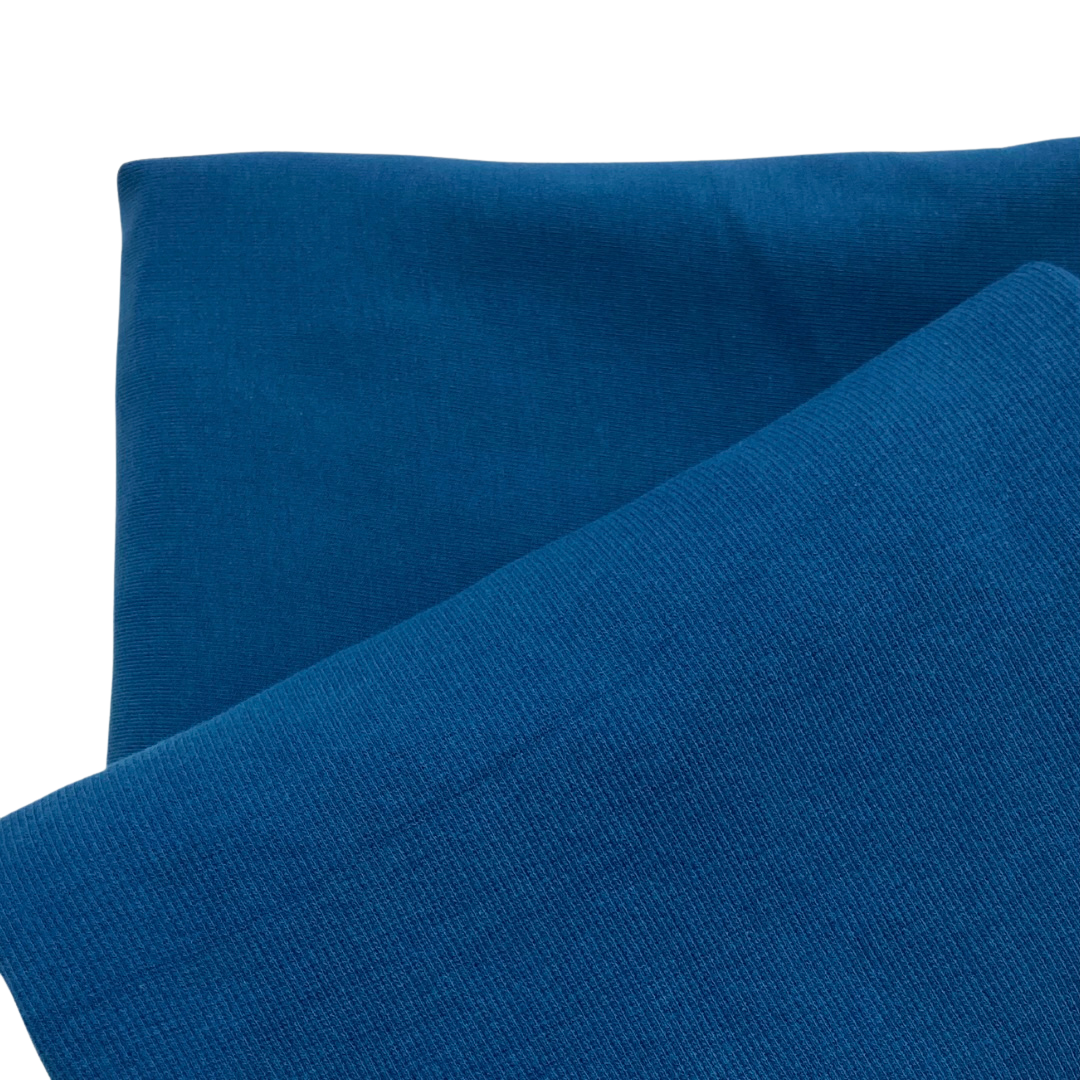 Description: This is the coordinating rib for Classic Blue French terry * this color seems to be very sensitive between screens and devises. It is a mid blue with a slight petrol hue. If you tried Legion Blue CL this is a similar shade but not exact same. |