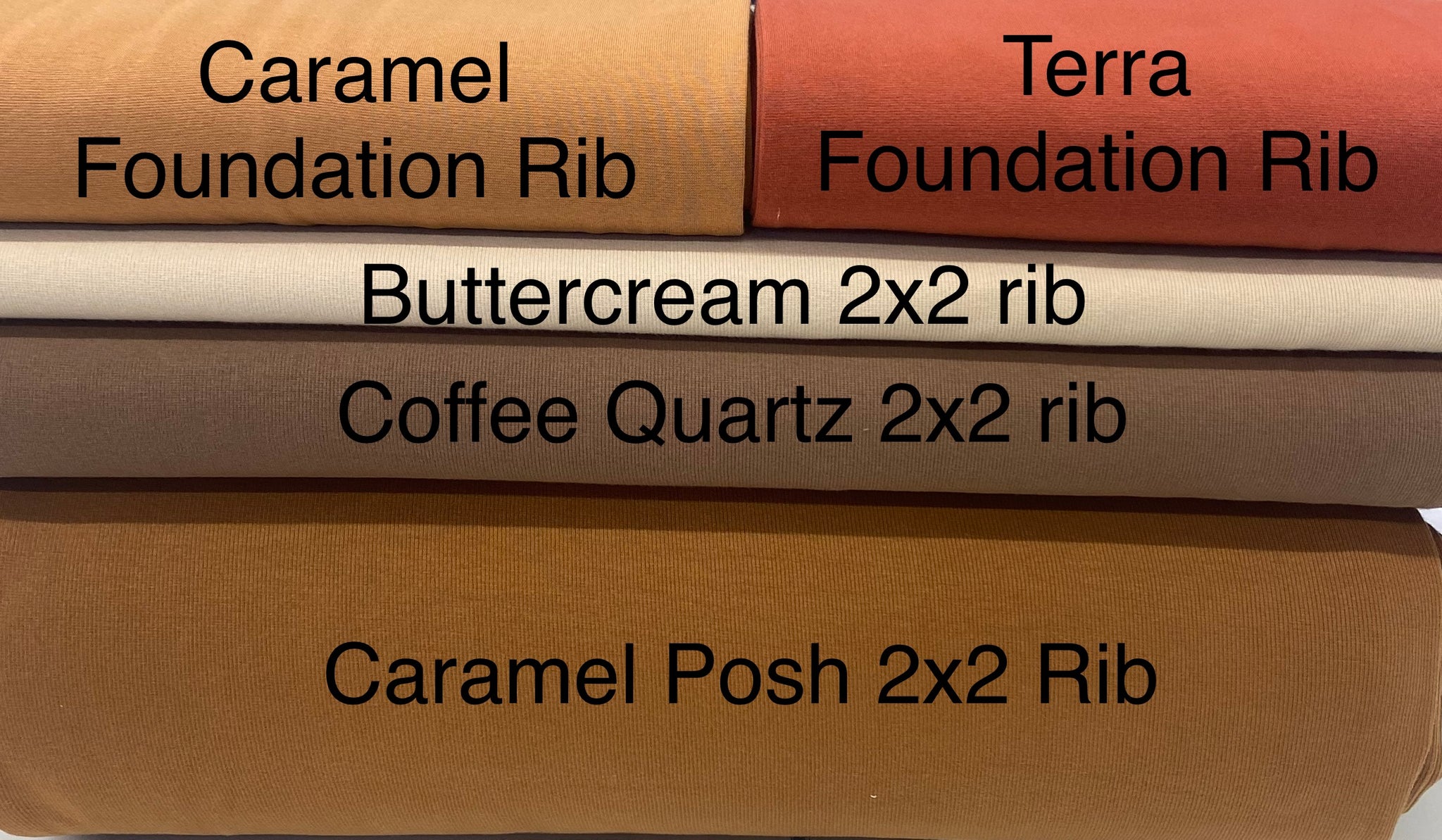 2x2 Ribbing | Caramel Posh, Coffee Quartz, Buttercream |