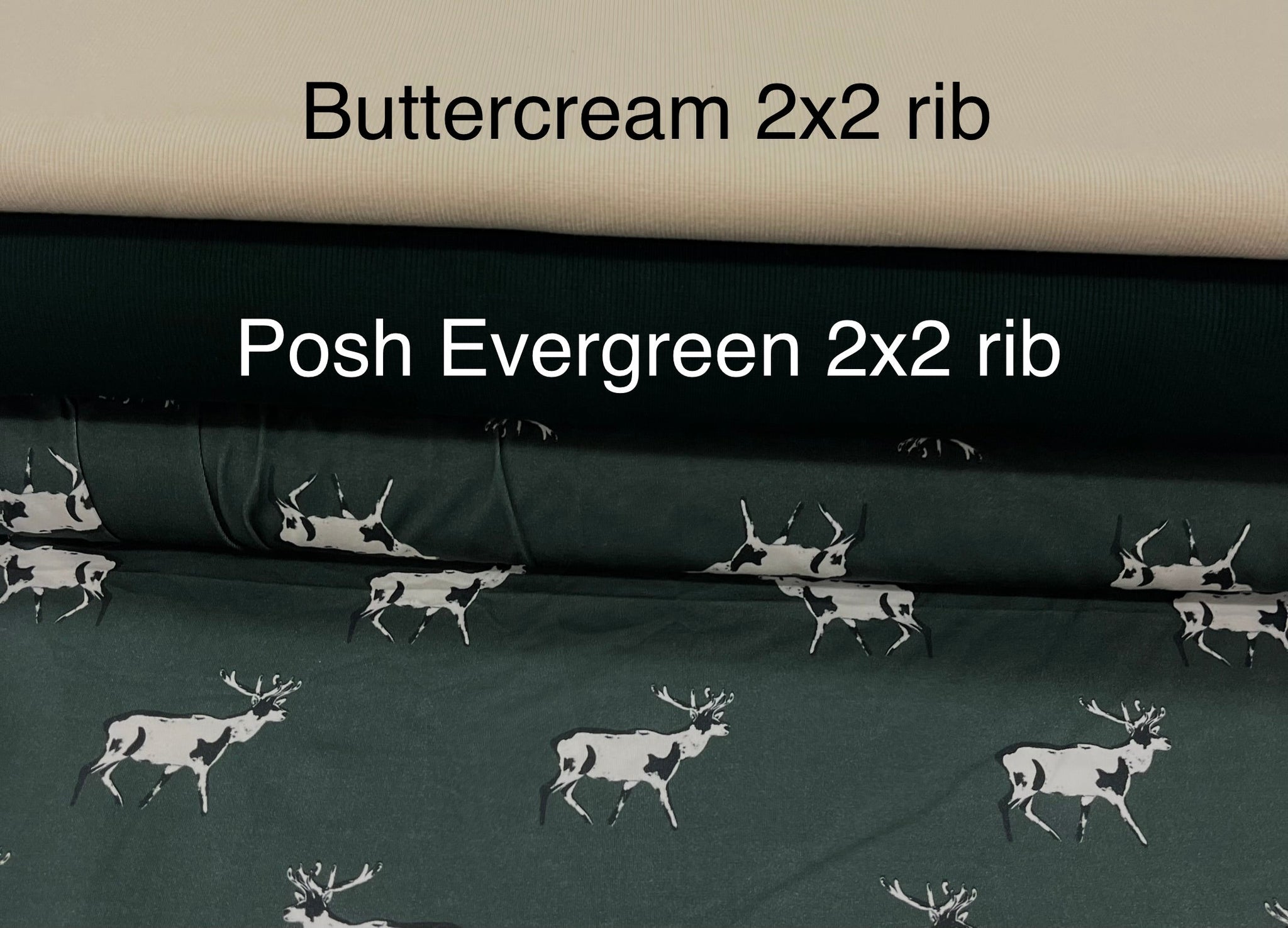 2x2 Ribbing | Butter Cream, Posh Evergreen |